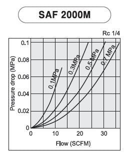 Q: What is the flow capacity of the PneumaticPlus SAF2000M-N02B filter?A: The filter has a flow capacity of thirty-seven SCFM at one hundred PSI. This makes it suitable for various pneumatic applications.