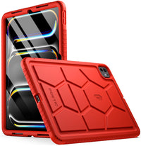 Poetic Turtleskin Case For Ipad Pro 11 Inch 2024 M4 5Th Gen, Heavy Duty Shockproof Rugged Kids Friendly Drop Protection Silicone Cover Case, Red