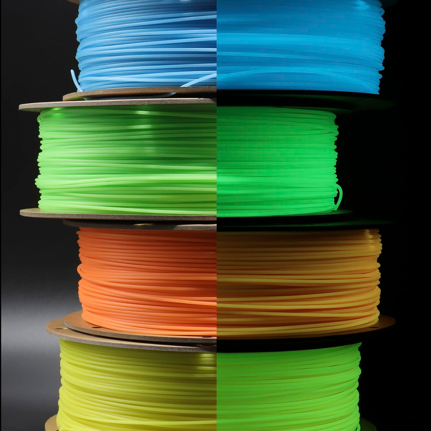 Q: How does the glow-in-the-dark feature work on the Luminous Yellow PLA filament?A: The Luminous Yellow PLA filament is designed to glow in the dark after being exposed to light. For the best glow effect, it is recommended to expose the filament to light for about 30 minutes before using it for printing glow sticks, figurines, or decorative items.