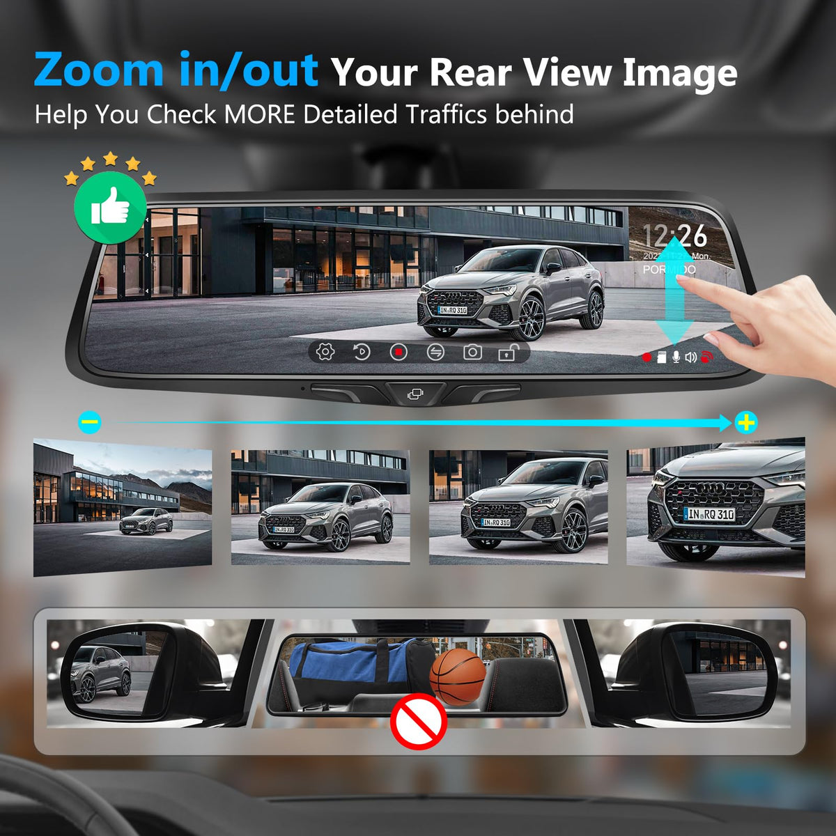 Pormido Oem 2K Rear View Mirror Camera,10' Mirror Dash Cam With Detached Front Backup Camera, Smart Full Touchscreen Rearview Wdr Dashcam With Built In Gps,64Gb Card,Parking Monitor,Night Vision
