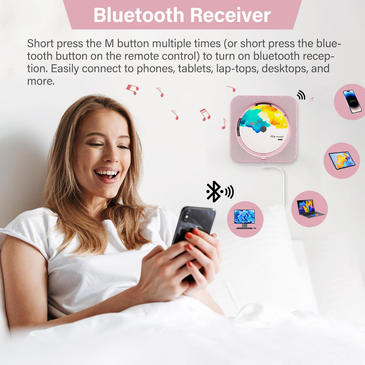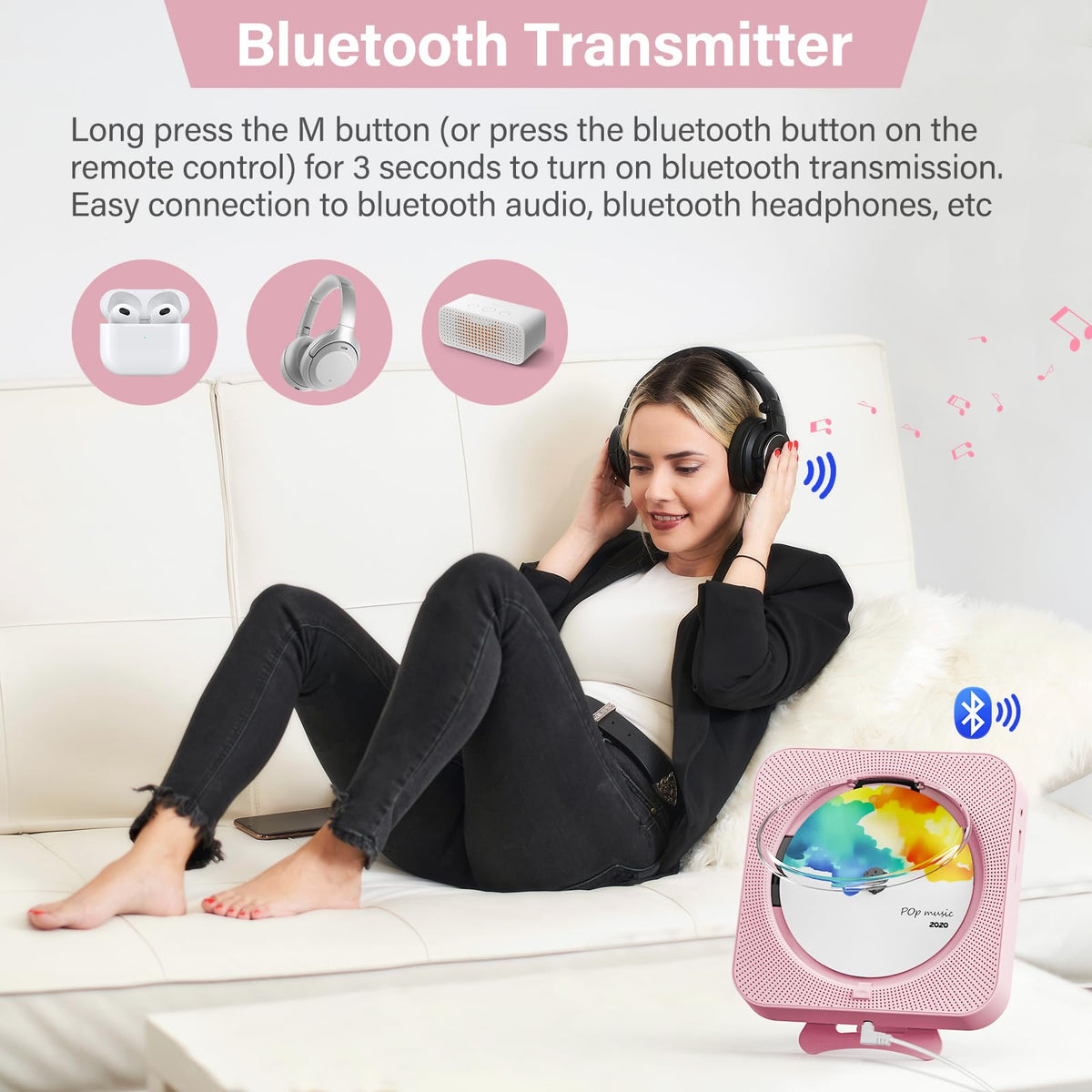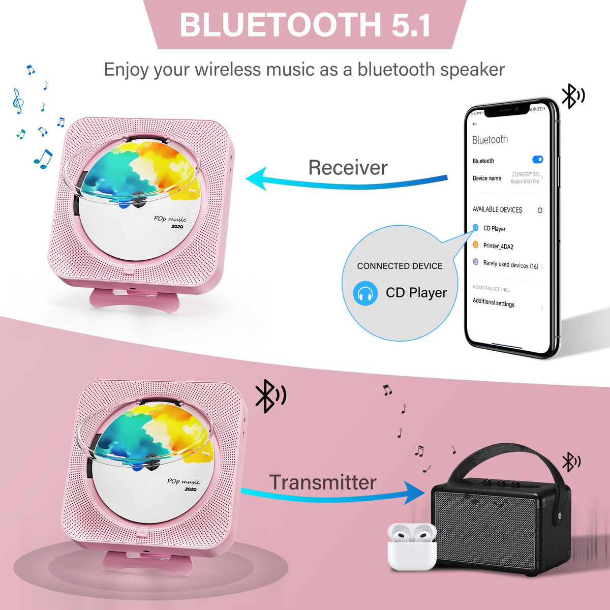 Cd Player Portable With Bluetooth 5.1Desktop Cd Player With Hifi Sound Speakers,Remote Control,Dust Cover,Led Display,Boombox Fm Radio,Usb/Aux For Home,Gift,Kids