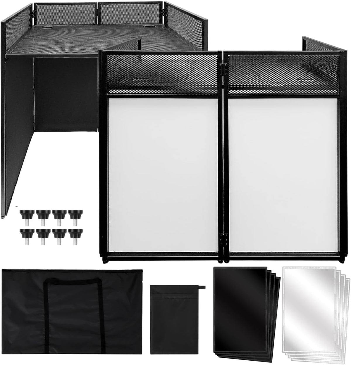 Portable Dj Facade Booth, Foldable Dj Table Station With White & Black Lighting Scrim,42L X46H X 25W Dj Stand Booth,With Adjusta