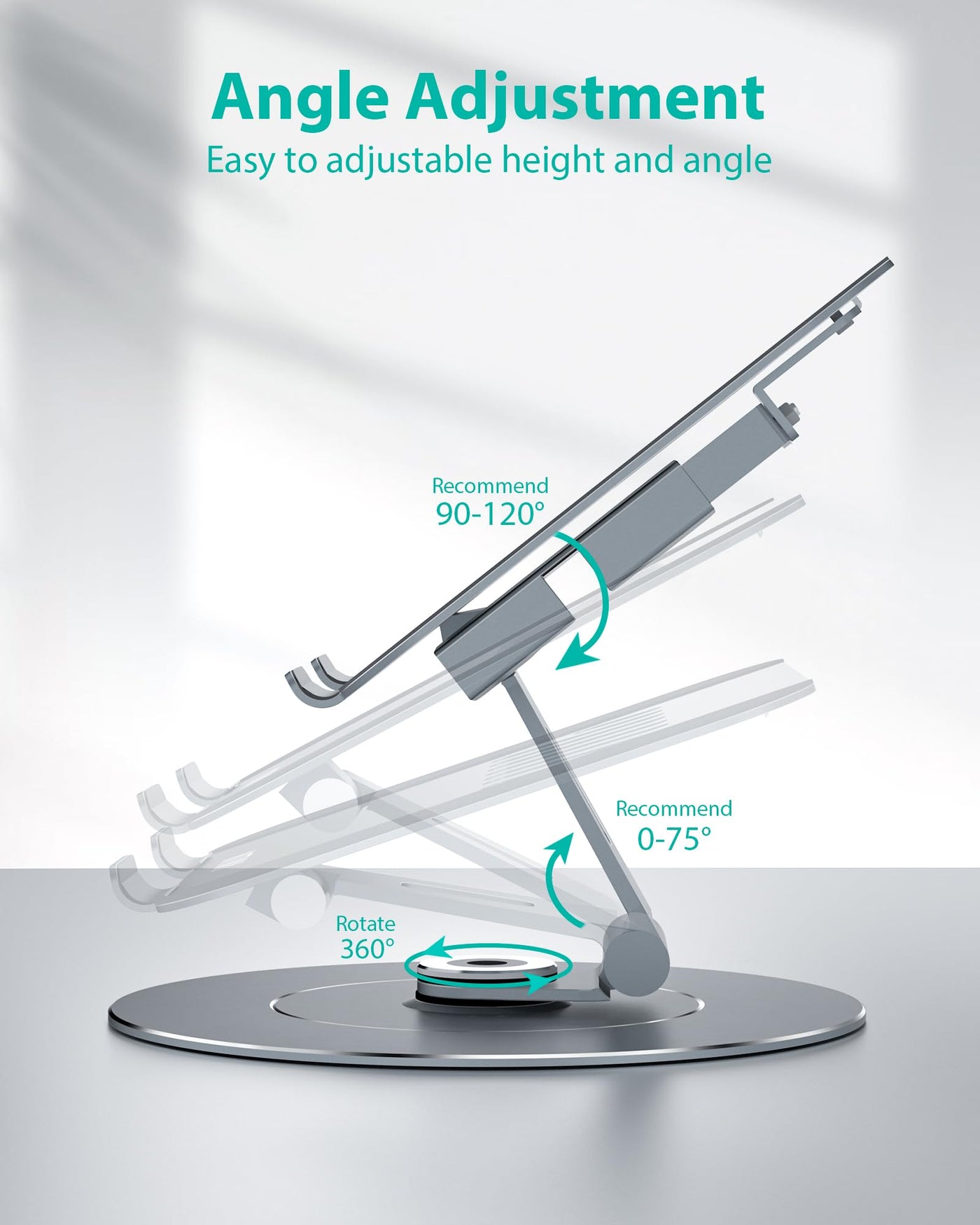 Nh 01 Laptop Stand With Phone Holder Has A Large Circular Base And Featuring A 360 Rotatable Axis Connecting With The Base, You Can Rotate Your Screen Freely, Super Stable And Non Shaking In All Directions. Features: Material: Aluminum Alloy + Silicone Weight: 2.87 Lbs Size L*W*H: 10.8 X 9.4 X 1.3 ~ 5.5 Inches Maximum Loading Capacity: 35 Lbs Applicable To Any Laptop Up To 17 Inches Color: Grey, Silver Package Includes: 1 X Nh 01 Laptop Stand 1 X User Manual