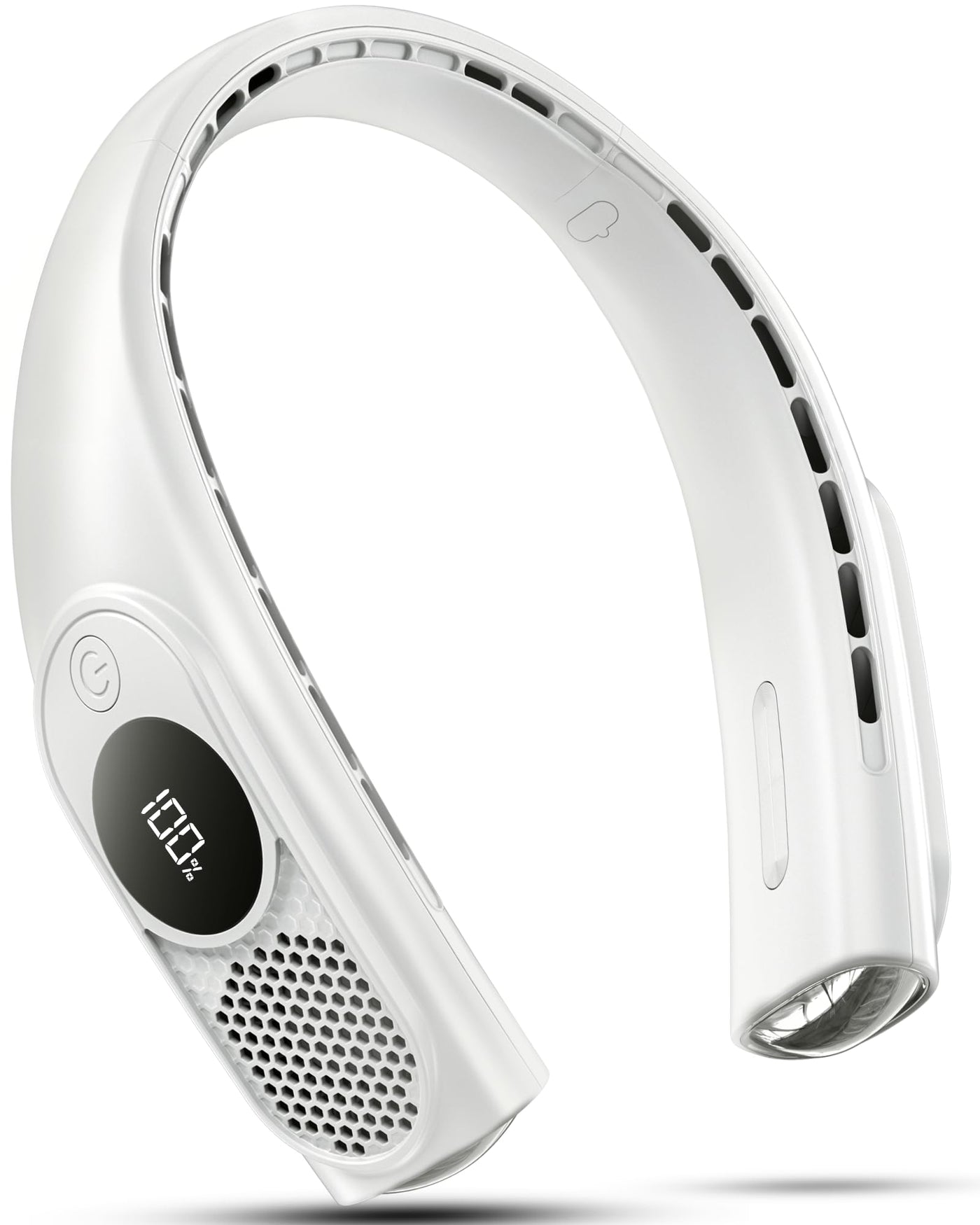Portable Neck Fans that Blow Cold Air, Wearable Bladeless Neck Fan, Rechargeable 360Personal Fan Neck Cooler, 3-Speed, LED Displ