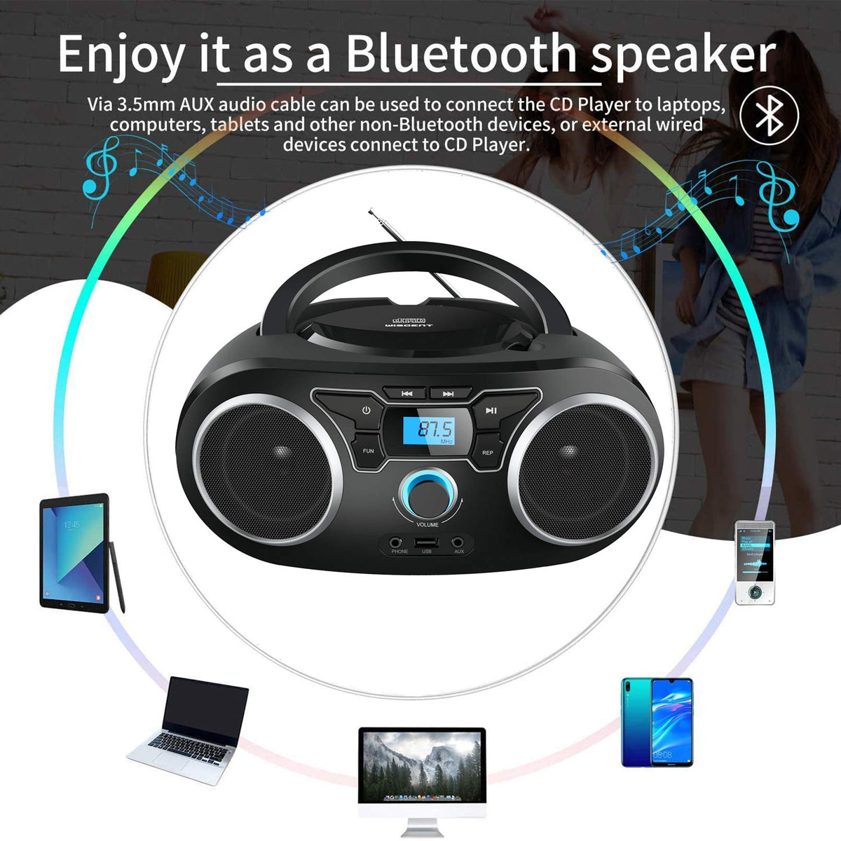 Portable Radio Cd Player Boombox With Bluetooth & Fm Radio, Usb Port, Aux Input, Headphone Jack,Compact Cd Player Radio Stereo S