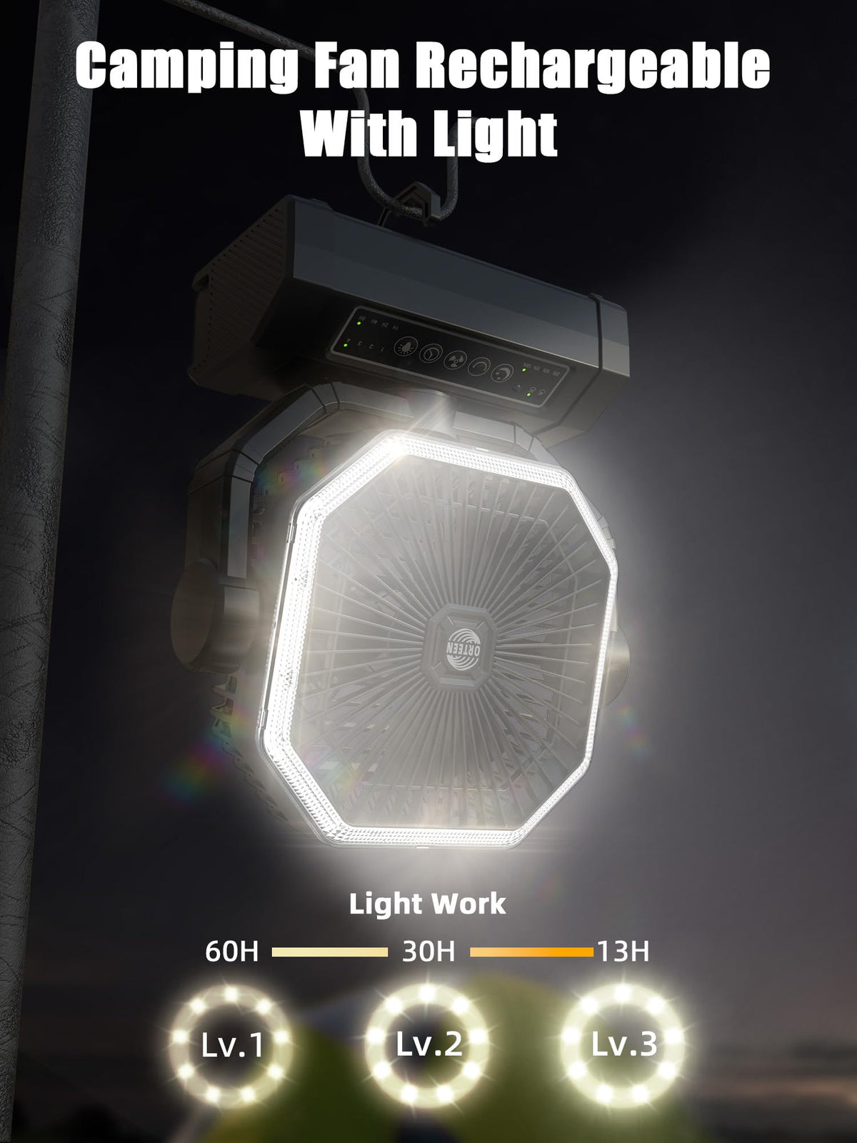 Portable Rechargeable Fan 9 Inch Camping Fan With Light 60Hrs 20000Mah Battery Operated Fan For Camping Outdoor Tent Fan