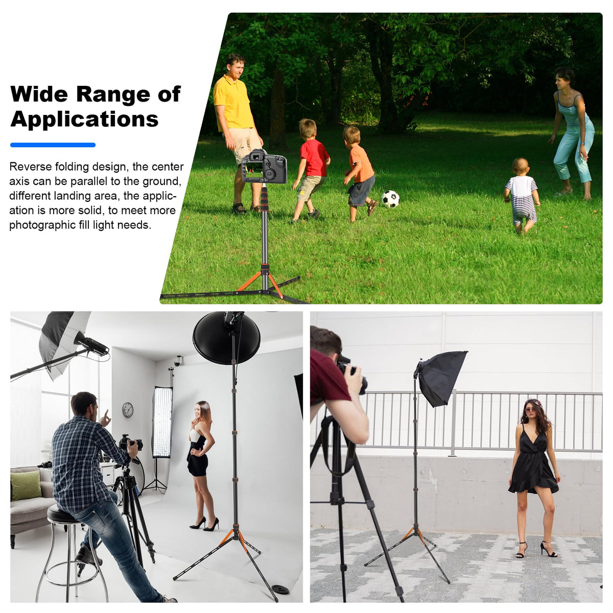 Q: Can the tripod be used for outdoor photography?A: Absolutely! The Soopho tripod is designed for multiple applications, making it ideal for outdoor events, sports photography, and travel vlogging due to its portable and versatile design.
