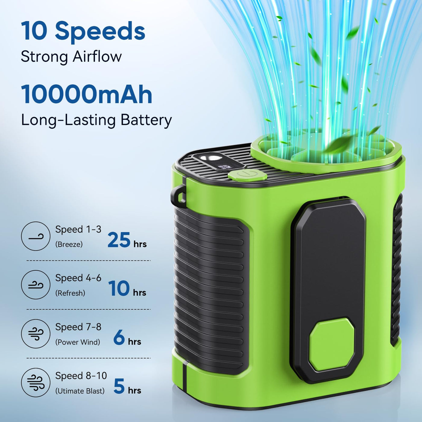 Portable Waist Fan, 10-Speed Rechargeable Body Fan With Led Light,Hands Free Wearable Belt Clip Waist Fans, 10000Mah Battery Coo