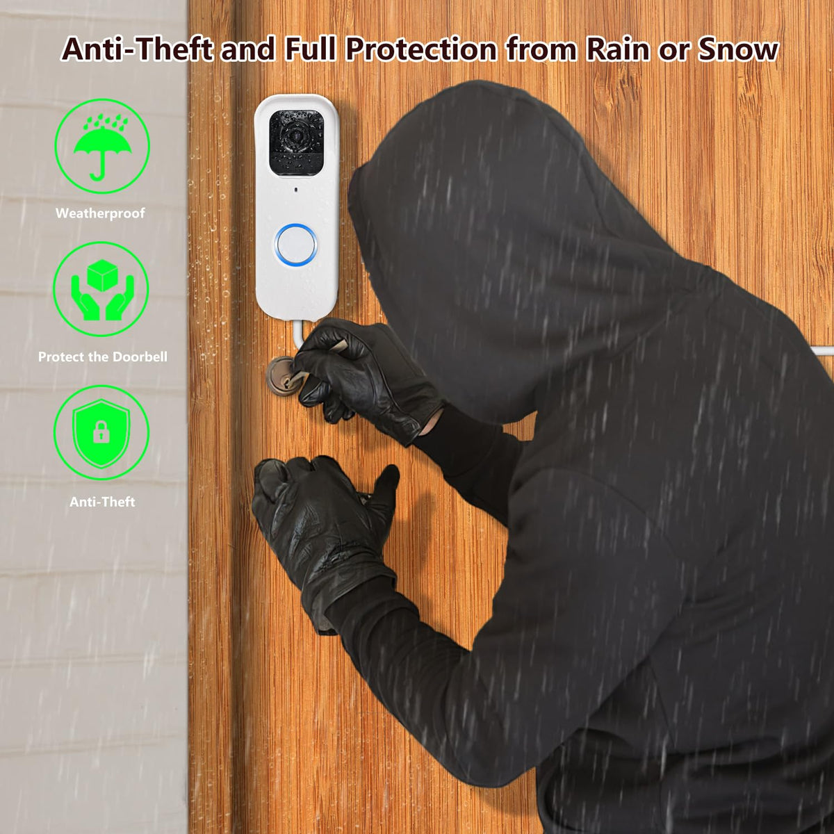 Q: Does the weatherproof cover protect the doorbell from all types of weather?A: Yes, the weatherproof cover is designed to protect your Blink Video Doorbell from rain, sun, wind, dust, and scratches, ensuring its longevity.