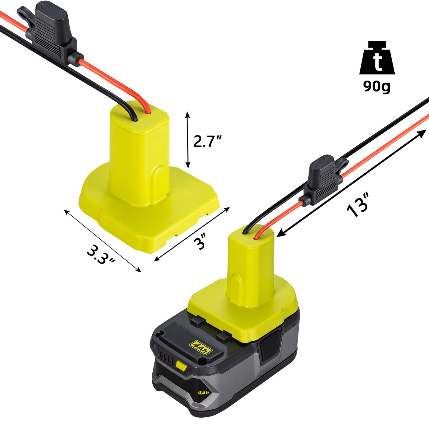 Specifications: 1.&Nbsp;Work&Nbsp;With For Ryobi P108 P107 P102&Nbsp;P103 P100 Li-Ion &Amp; Ni-Cd Battery.&Nbsp;Easy To Install ,Locks On You Battery Very Well. 2.&Nbsp;&Nbsp;The Red Wire Is Connected To The Positive Battery Terminal, And The Black Wire Is Connected To The Negative Battery Terminal. 3.&Nbsp;Power Wheels Adapter Has 12.5&Nbsp;Inches Of 14&Nbsp;Gauge Wire Installed. 4.&Nbsp;The Wire Terminal Is Convenient For You To Quickly And Accurately Connect The Adapter To The Device Package List: 1 X 18V&Nbsp;Battery Connector 3 X 30A Replacement Fuses 1 X Wire Terminals