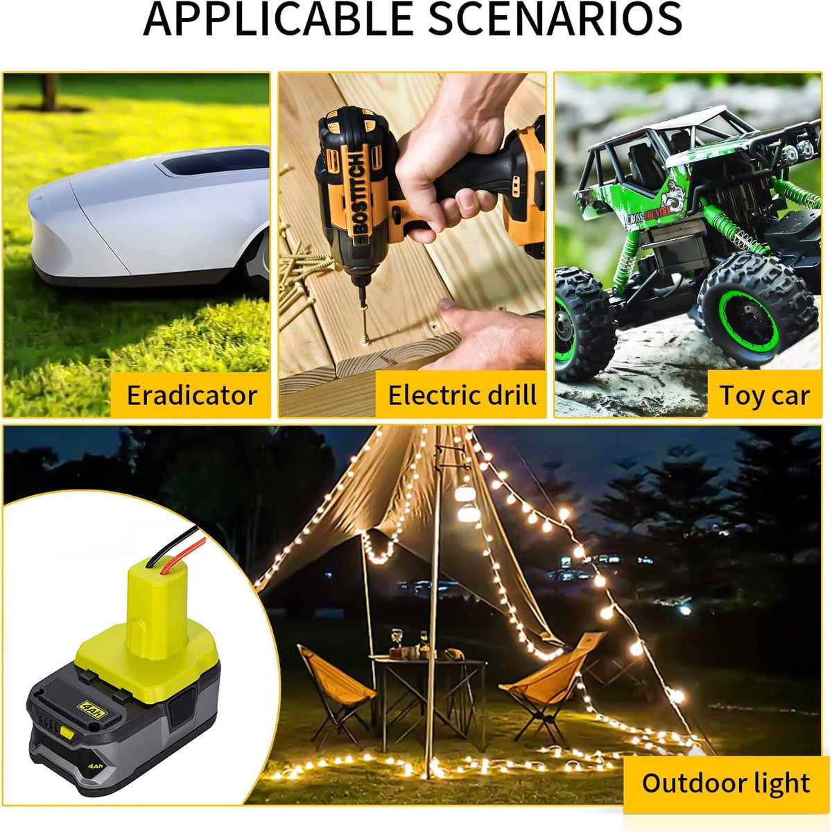 Newly Power Wheel Adapter You Can Use It To Upgrade Your Power Wheels, Rc Toys, Robotics, Diy Etc. First, You Need Install The Battery Into The Connector, Then Easily Connect It To Your Devices. This Newly Adapter Is Equipped With Fuses, Wire Terminal, And Upgraded 12 Gauge Wire, Ensure Quickly And Safely Upgrade Your Power Wheel, Enjoy The Beauty Of Diy At Your Spare Time Or When You'Re Accompanying Your Children. Work With Ryobi 18V Li-Ion Battery. Compatible With Ryobi Lithium-Ion 18V Battery: One+ P189, P190, P191, P192, Pbp002, Pbp003, Pbp004, Pbp005, Pbp006, P193, P194, P195, P197, P102, P103 , P104, P105, P107, P108, P109, Rb18L50, Bpl1820, Bpl-1820G, Bpl-1815, Bpl-18152 Enjoy Doing Yourself Diy Tools Toys Or Robotics Diy Which Is Easy To Use. As Long As The Battery Is Installed Into The Connector, It Can Be Easily To Connect The Battery To Your Devices. For High Power Applications. For Rc Car, Rc Truck , Work Light Diy, Etc. Note: 1. This Converter Is Not A Charger, It Only Outputs The Voltage And Power Directly From Your Battery. 2. The Red Wire Is Connected To The Positive Terminal, Black Wire Is Connected To The Negative Terminal. When Using, The Two Wires Shouldn'T Be In Contact. 3. If Not Used For A Long Time, Please Be Sure To Remove The Battery Form The Adapter. Package Content: 2 X Power Wheels Adapters 6 X 30Amp Fuses 2 X Wire Terminals