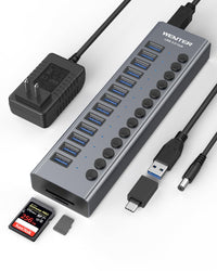 Powered Usb 3.0 Hub, Wenter 13 Ports Powered Usb Hub With Sd/Tf Card Reader, Aluminum Usb Splitter With Individual On/Off Switches, 12V/3A 36W Power Adapter For Pc/Laptops