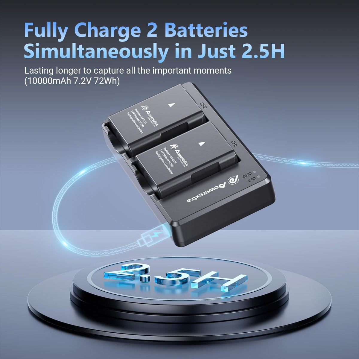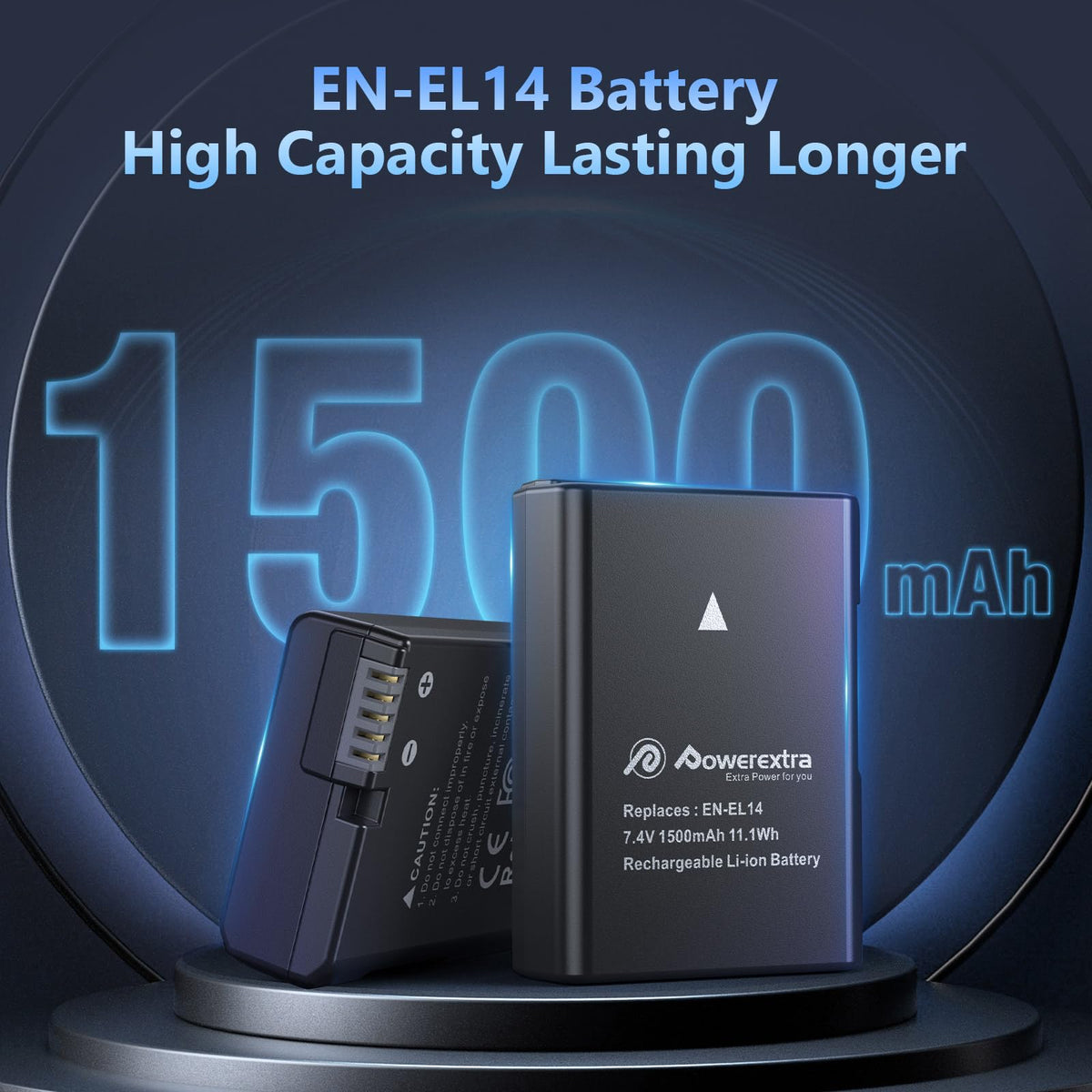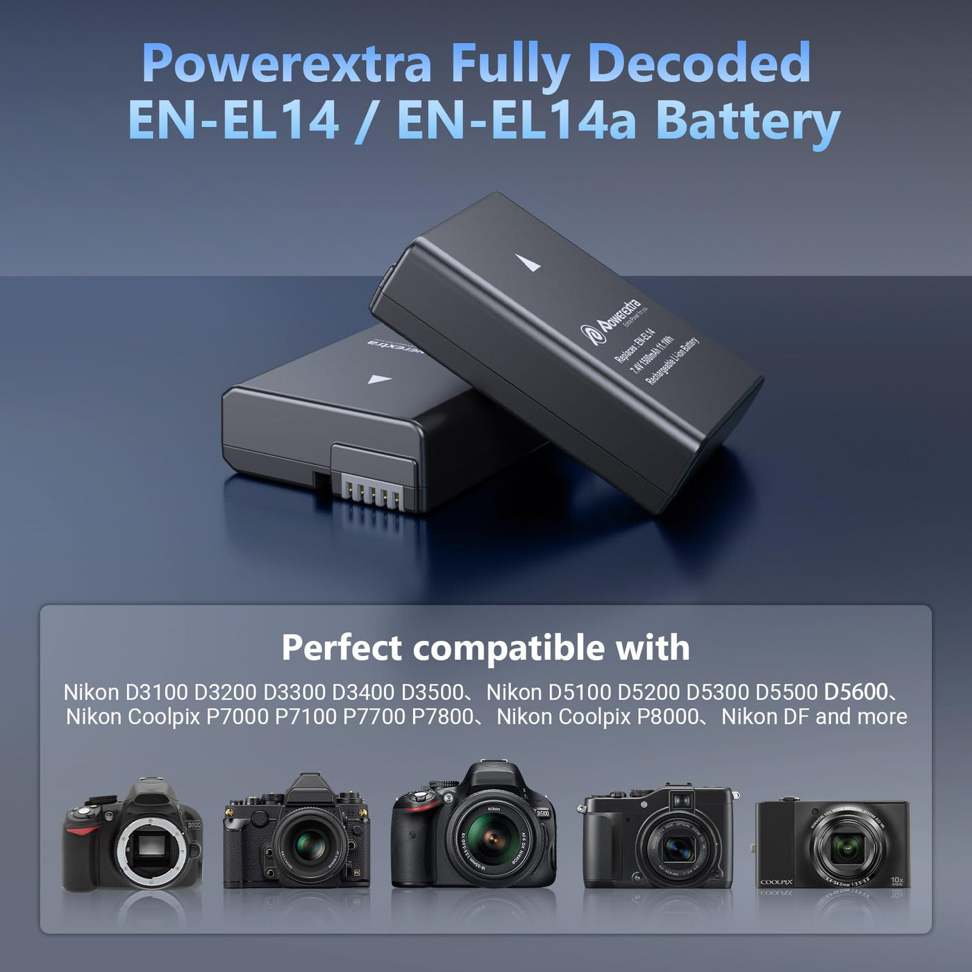 Powerextra 2 X En El14 En El14A Battery & Dual Lcd Charger Compatible With Nikon D3100 D3200 D3300 D3400 D3500 D5100 D5200 D5300
