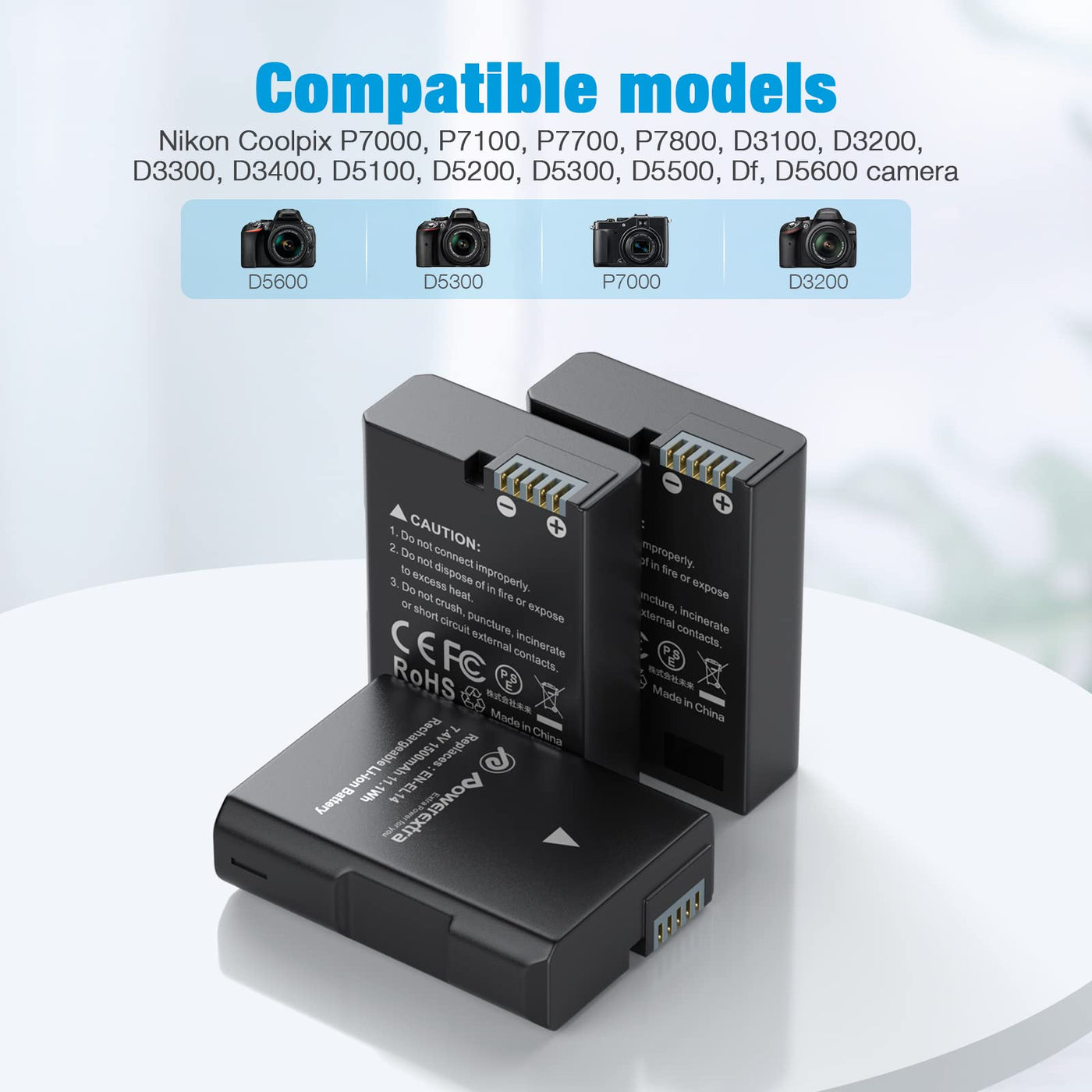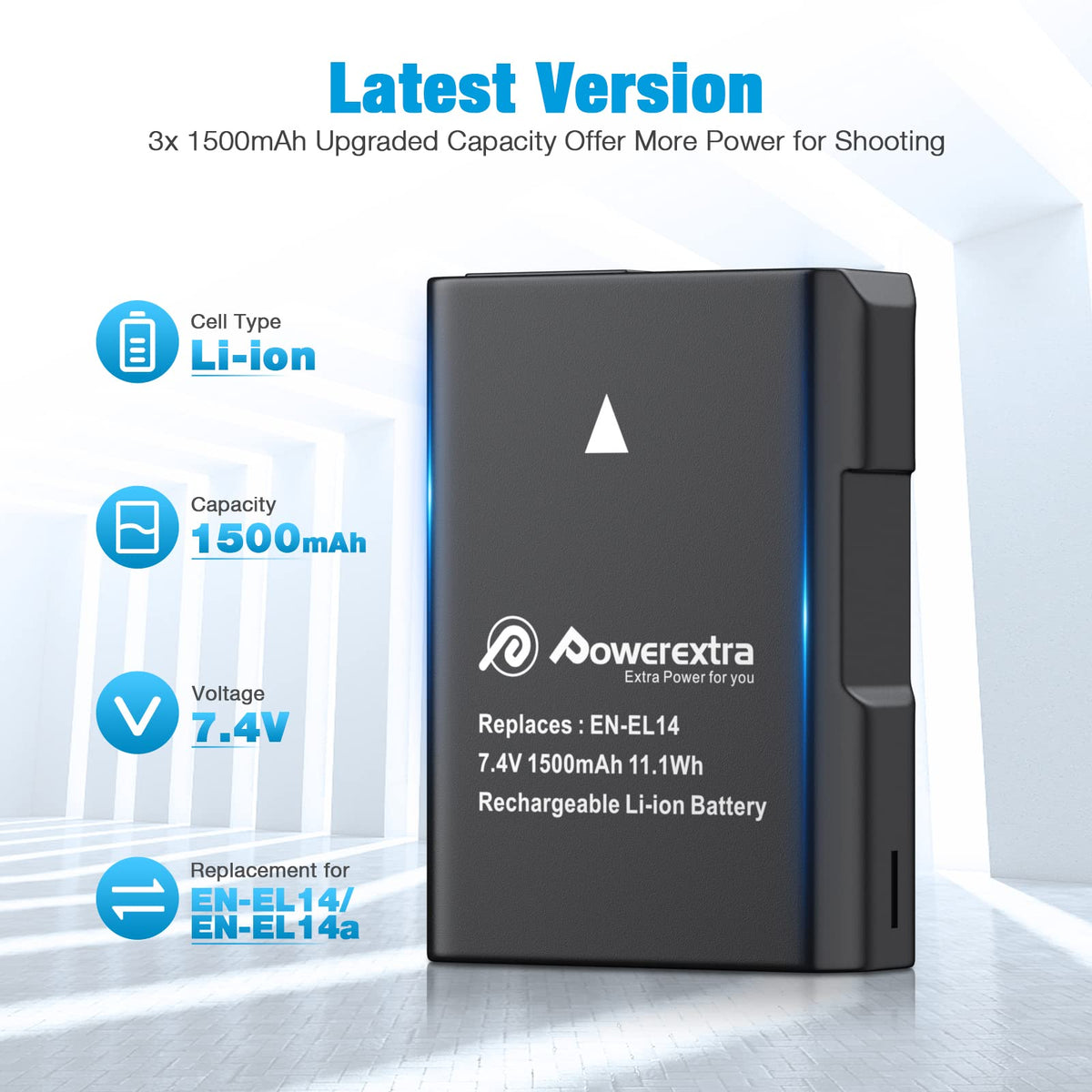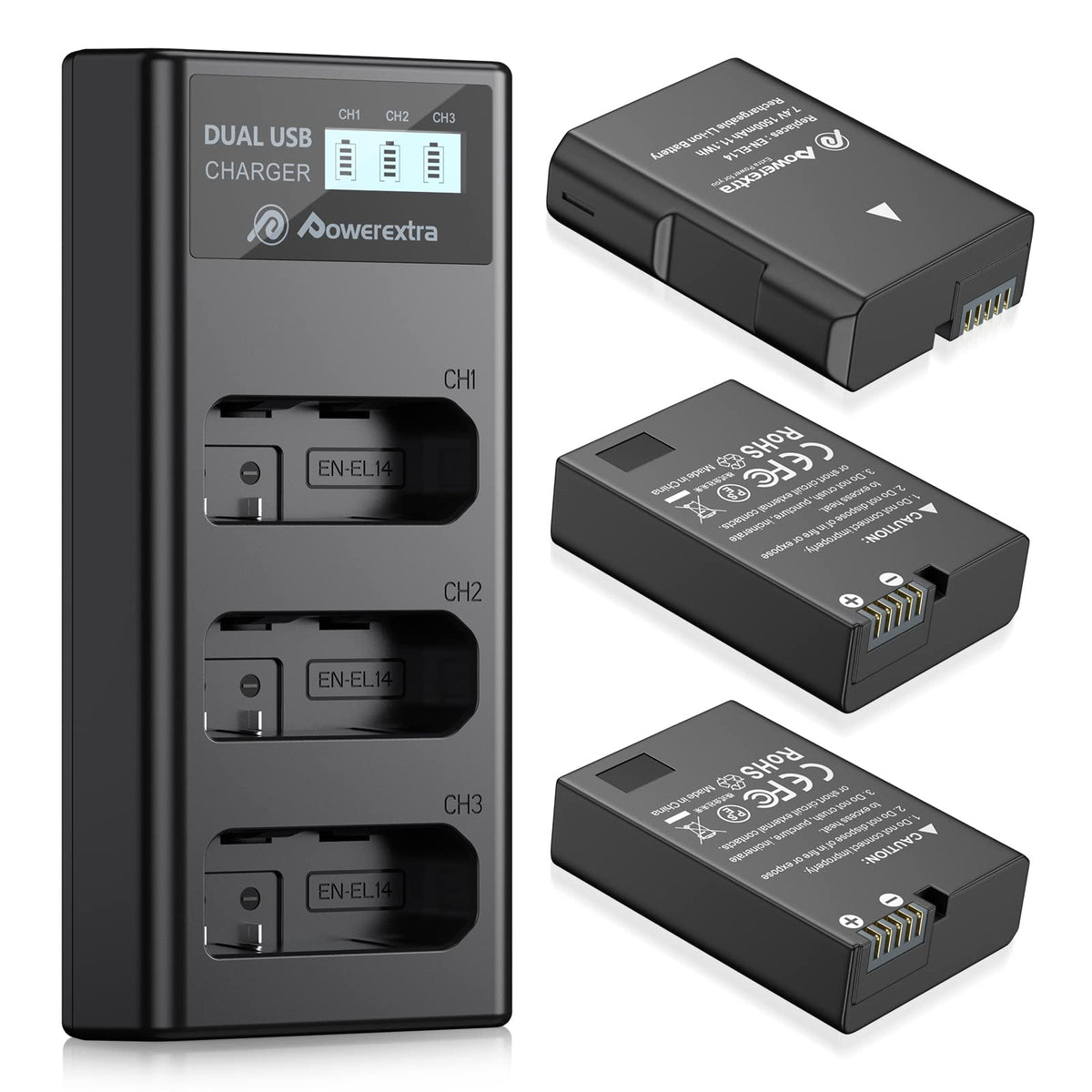 Powerextra 3 X En El14 En El14A Battery & Lcd Triple Charger Compatible With Nikon D5600 D5500 D5300 D5200 D5100 D3500 D3400 D33
