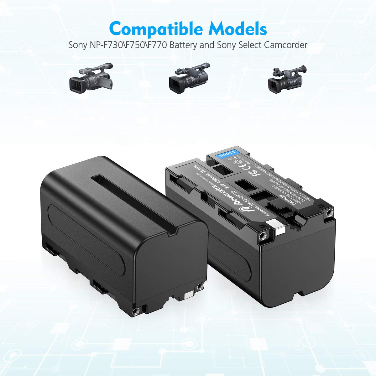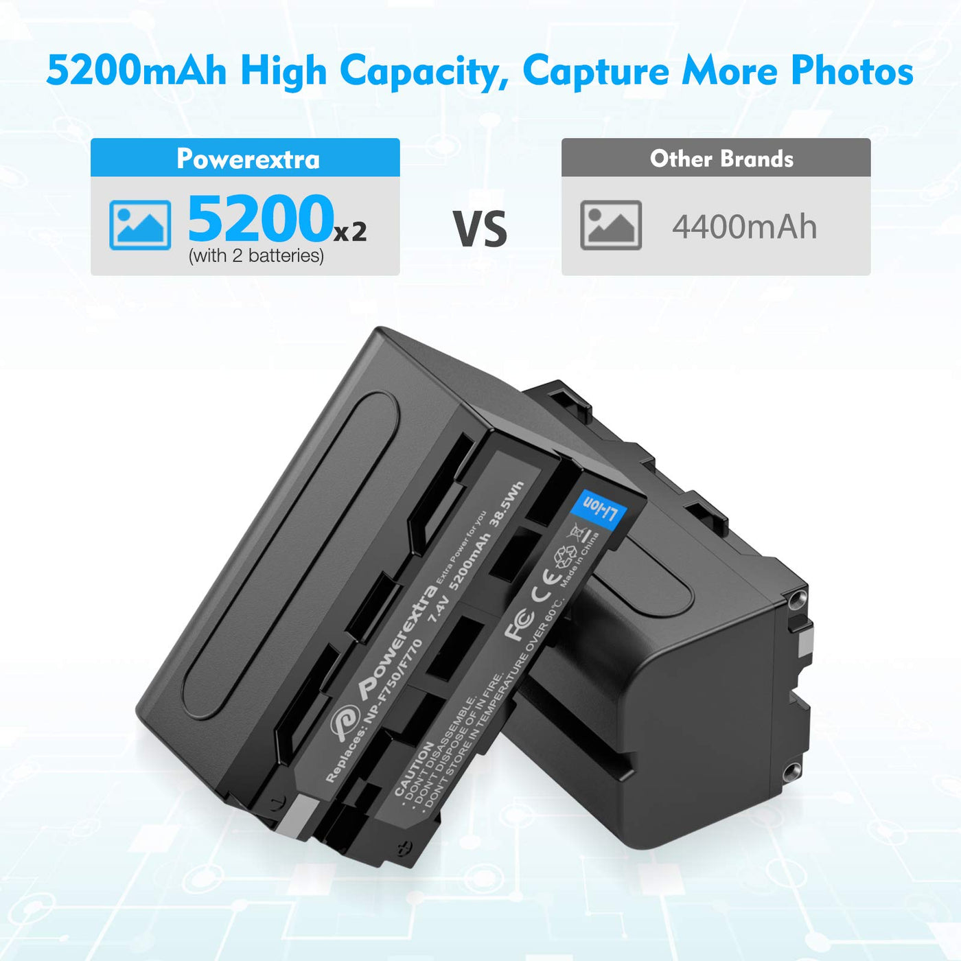 Powerextra Np-F750 Replacement Battery: Battery Type: Li-Ion; Capacity: 5200Mah; Voltage: Dc 7.4V, 38.48Wh Replacement For Sony Np-F750 Np-F770 Np-F550 Np-F570 Np-F330 Batteries, Work With Sony Handycams And Led Video Light , Field Monitor (Which Are Using F550 Battery). The Battery Cells Has Passed Ul Which Can Offer Longer Battery Life And Safety In Use. Fast 4 Channal Battery Charger: Input Dc:100-240V 50-60Hz 0.6Amax Output Dc: 8.4V 1000Ma*4 When Charger Is Powered On, Lcd Displays Tell You The Charging Level Package Includes: 4 X Np-F750 Batteries 1 X 4 Channel Charger 1 X Ac Cable 1 X Microfiber Cleaning Cloth