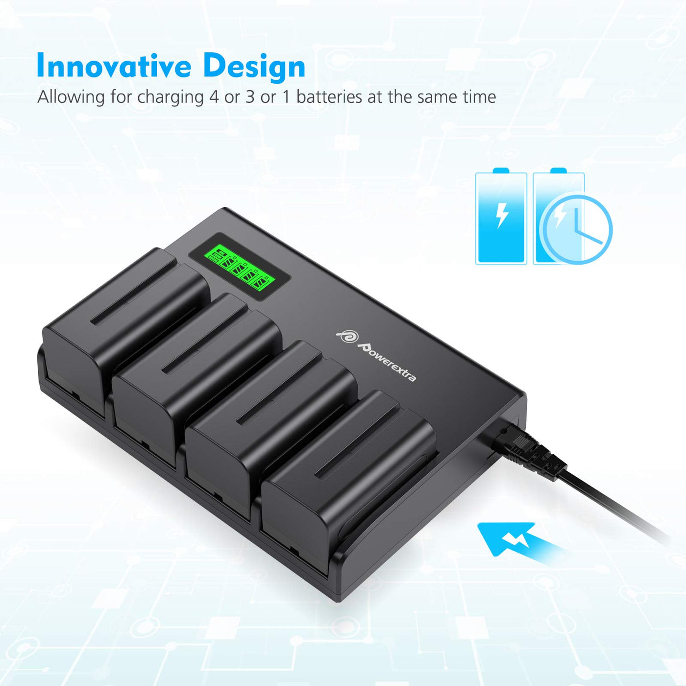 Powerextra 4 Pack Replacement Sony Np F750 Batteries And 4 Channel Charger For Sony Np F730, Np F750, Np F760, Np F770 Battery