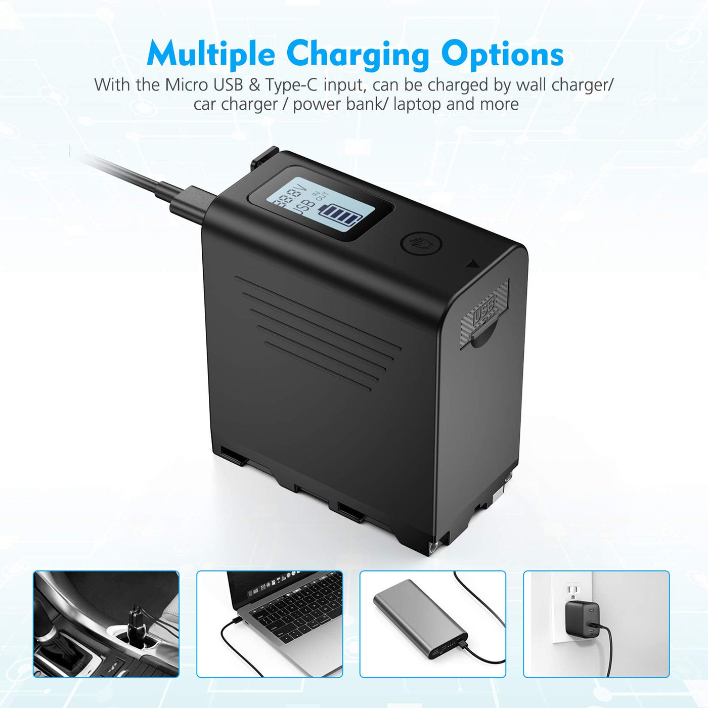 Powerextra Multifunctional Battery Pack High Capacity 10050Mah With Usb Output Lcd Display For Sony Np-F970, Np-F975, Np-F960, Np-F950, Np-F930 Battery And Video Light -Upgraded