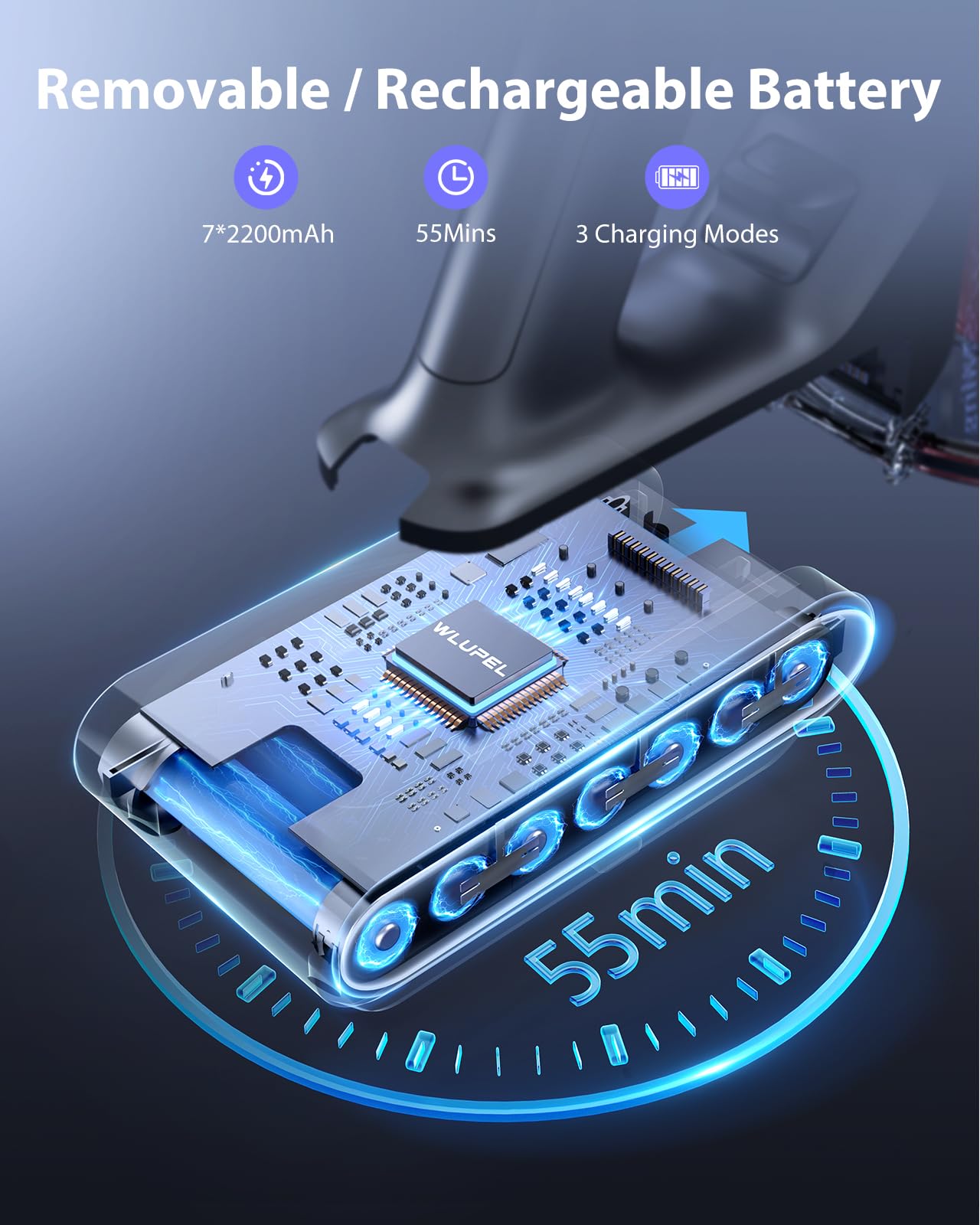 Q: How long does the battery last on the Powerffy Cordless Vacuum Cleaner?A: The vacuum cleaner is equipped with a removable battery that provides up to 55 minutes of runtime in ECO mode, allowing for extended cleaning sessions without the need for frequent recharging.
