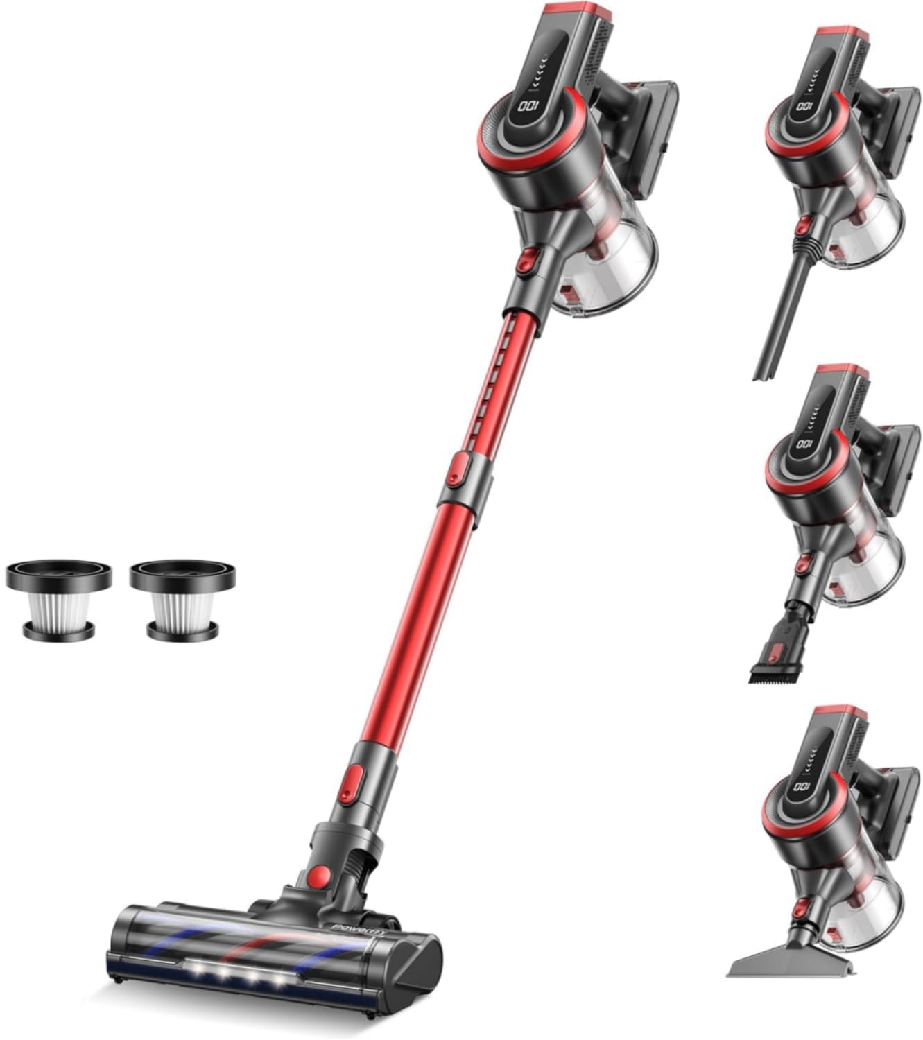 Powerffy Cordless Vacuum Cleaner, Stick Cordless Vacuum with LED Touch Screen, Anti-Tangle Vacuum Cleaner with Charging Station