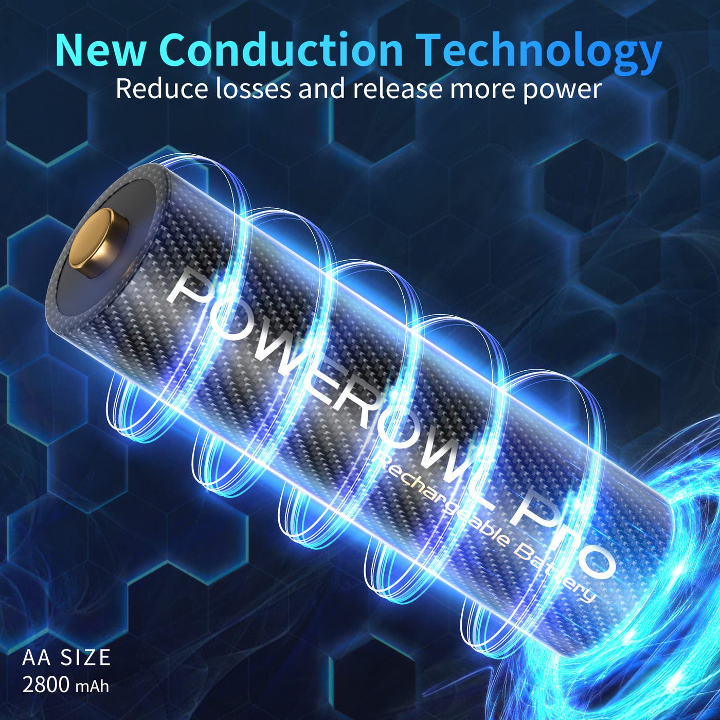 Powerowl Goldtop Rechargeable Aa Batteries Pro W/ 8 Bay Charger, High Capacity 2800Mah, Premium Nimh Double A Battery 8 Count