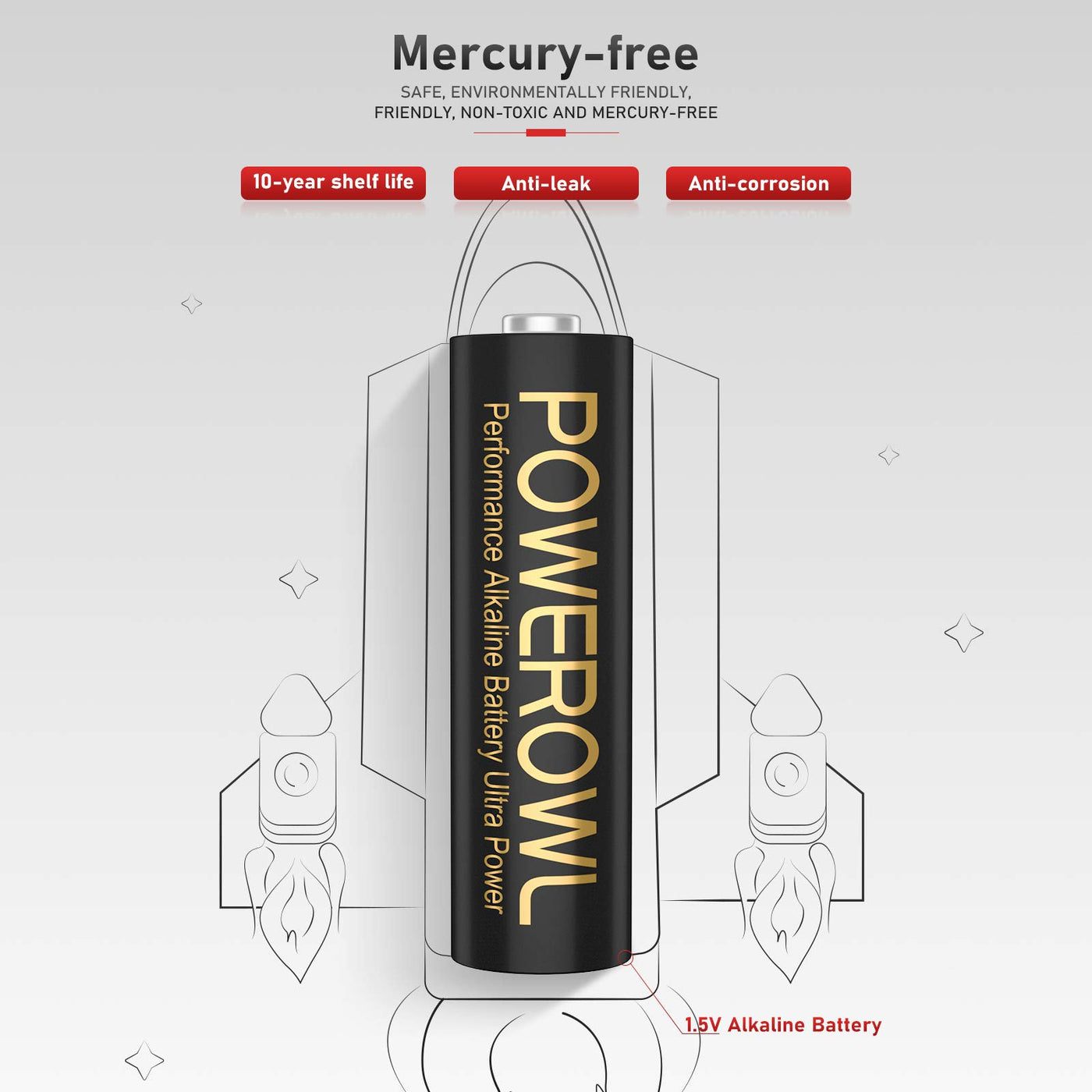 Powerowl High Capacity Alkaline Aa Batteries 24 Pack, 1.5V Long Lasting Double A Battery, 10 Year Shelf Life