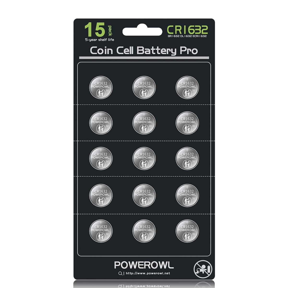 Powerowl High Capacity Cr1632 Battery (15 Pack) Cr 1632 3V Lithium Batteries, 10 Years Leak Free