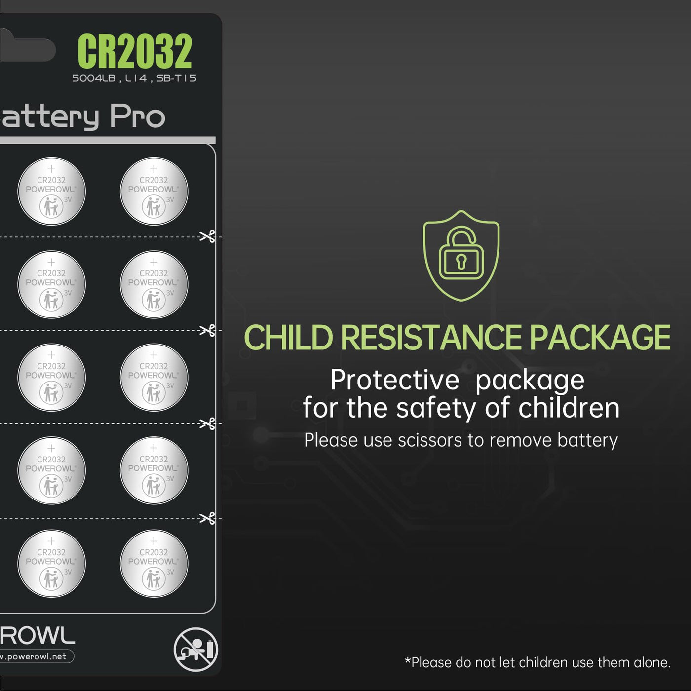 Q: What safety precautions should I take when using these batteries?A: When using POWEROWL CR2032 batteries, keep them out of reach of children, do not charge them, avoid short-circuiting, heating, or throwing them into fire, and store them in their original packaging until use.