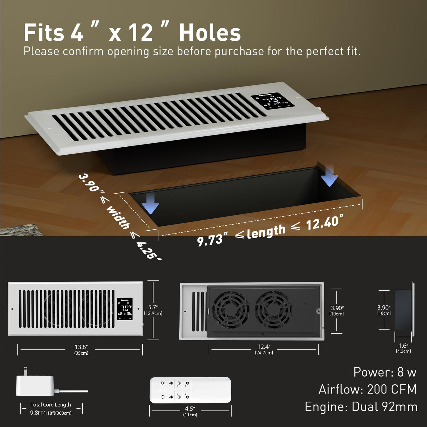 4 X 12 Floor Register With Fan Air Register Booster Vent Fan Booster Register Booster Fan Vent Fan Ac Vent Booster Fan Air Vent Fan Booster For Room Floor Vent Fan Booster Vent Booster Fan Register Booster Floor Vent Fan Air Vent Fan Ac Vent Fan Vent Fans Air Vent Booster Fan Register Booster Fan 4X12 Smart Vents For Your Air Ducts Fan Vent
