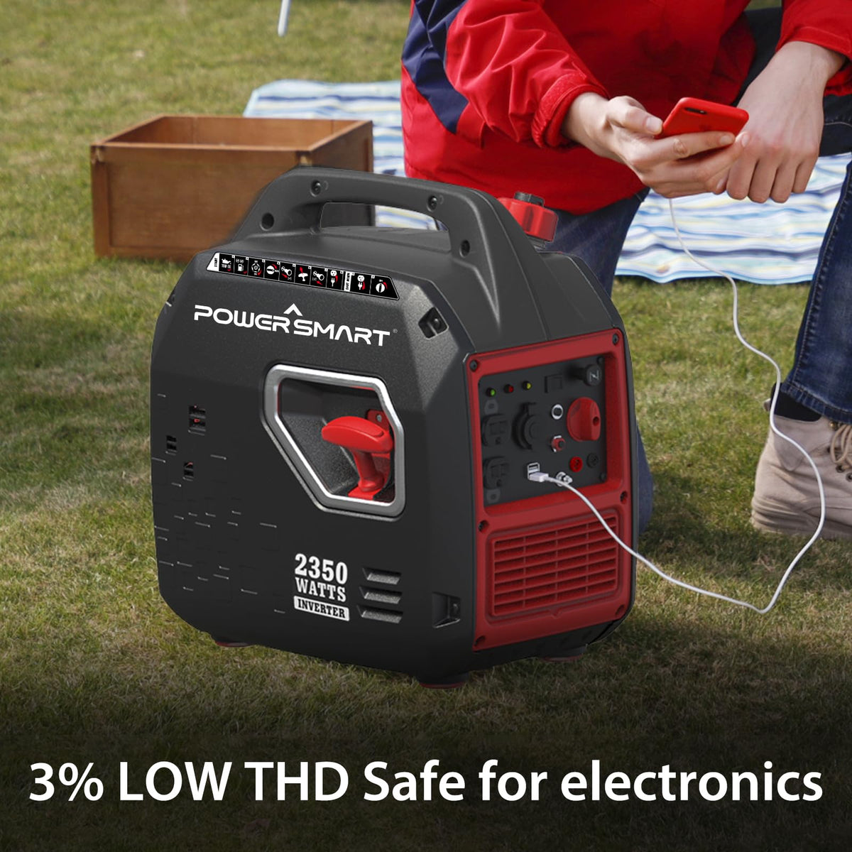 Powersmart 2350 Watt Portable Inverter Generator With Co Protect, Super Quiet Portable Generator Gas Powered, Ultral Light, Eco