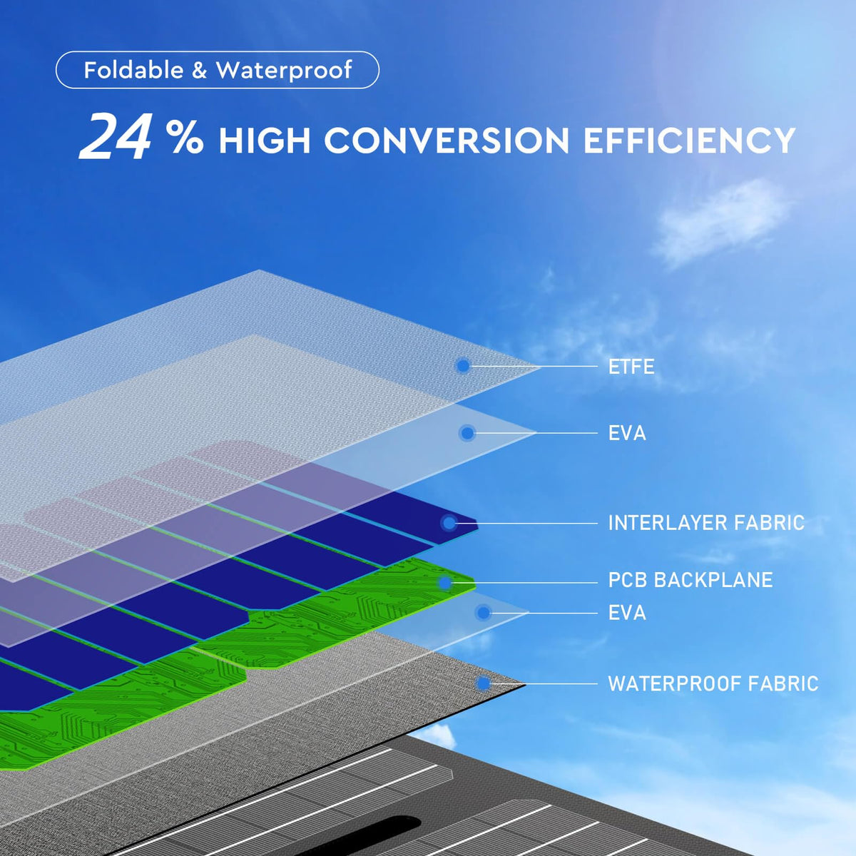 Q: Is the solar panel waterproof and durable?A: Yes, the Powkey solar panel is made from durable nylon and features IPX 4 technology, making it waterproof. However, please note that the outlet connector box is not waterproof.