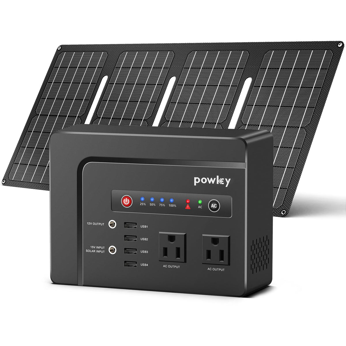 Powkey Solar Generator With Panel, 146Wh/200W Portable Power Station With Solar Panel 40W, 110V Pure Sine Wave Dc/Usb/Ac Outlet