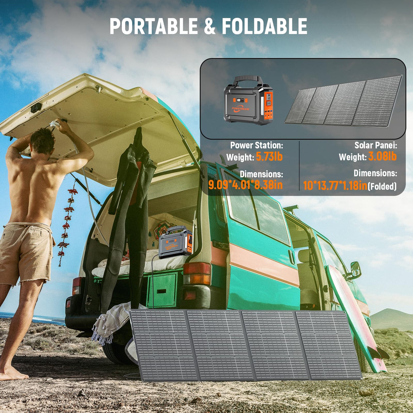 Powstream 300W Solar Generator 296Wh Camping Portable Power Station With 60W Foldable Solar Panel Lithium Battery Power Bank W