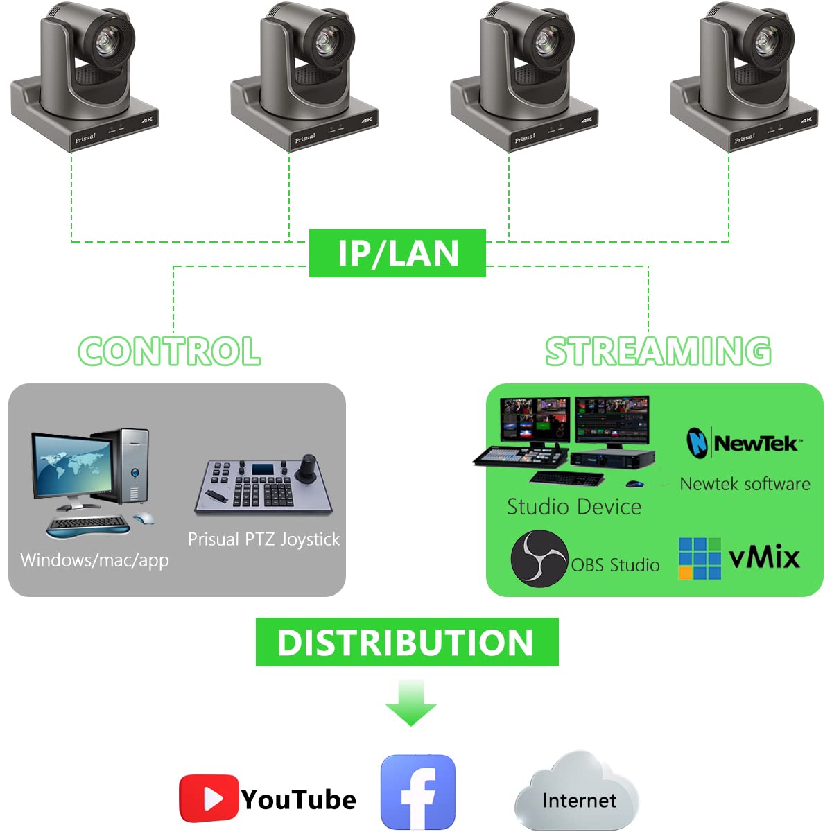 Prisual 4K Ptz Ndi Camera 60Fps 20X Optical Zoom Ai Auto Tracking With Poe Hdmi/Sdi/Usb/Ip Live Streaming,4K Ptz Camera For Chur