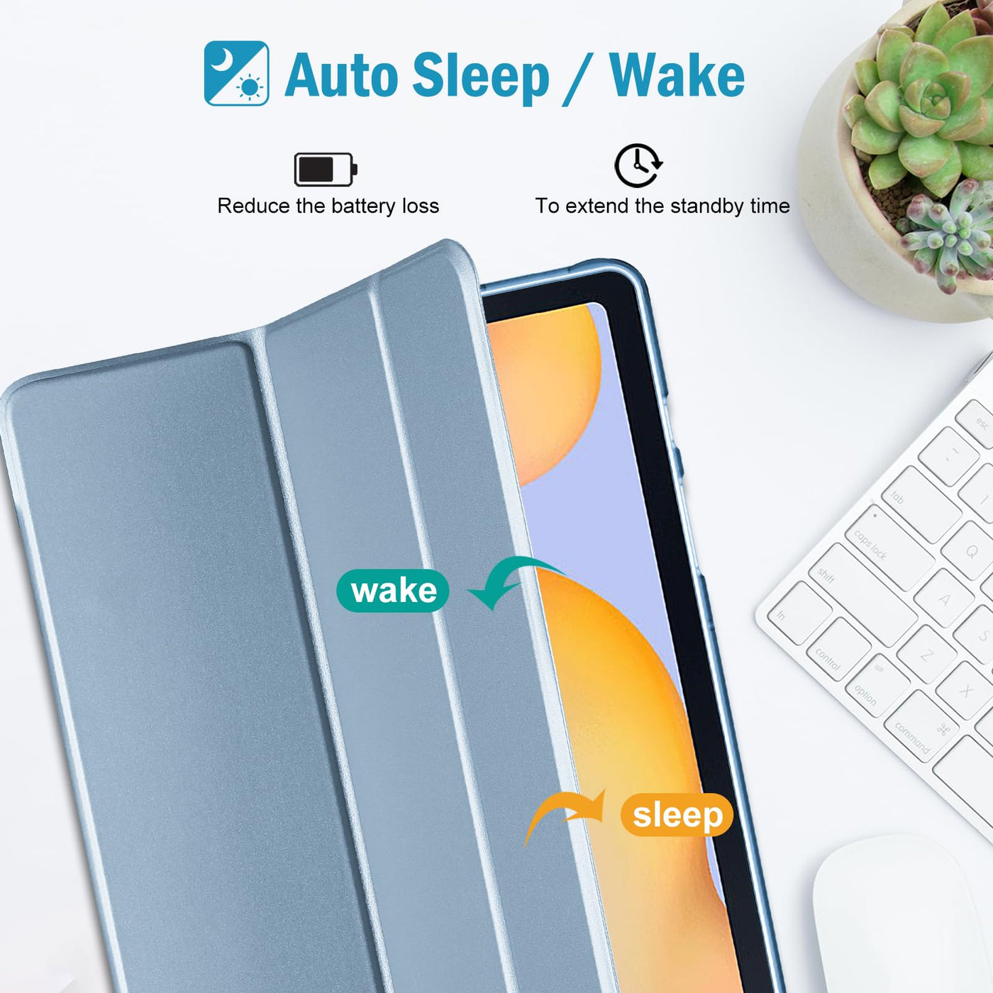 Procase Cover For Galaxy Tab S6 Lite 10.4 Case 2024 2022 2020 With S Pen Holder(Sm P620/P625/P613/P619/P615/P610), Trifold Stand Folio Soft Tpu Translucent Back Cover Support Auto Wake/Sleep Skyblue