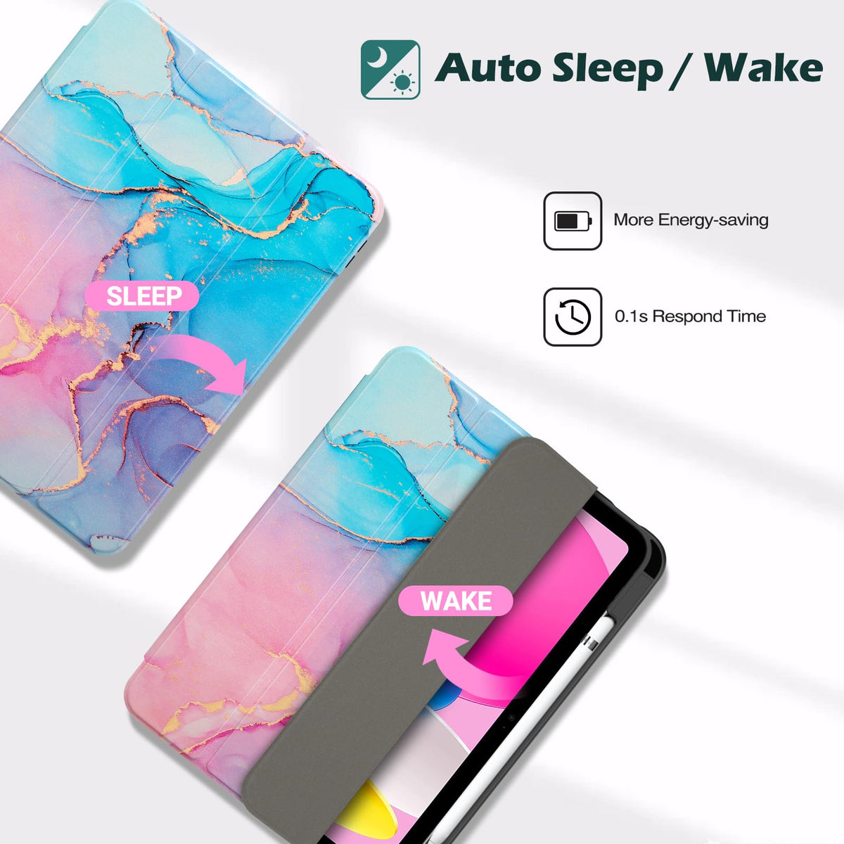 Protective Case For Ipad (A16) 11Th Generation 11-Inch 2025 Release (Model: A3354 A3355 A3356), Ipad 10Th Generation 10.9-Inch 2022 Release (Model: A2696 A2757 A2777). Also Compatible With Usb-C Pencil & 1St Generation Pencil. Please Check Back Bottom Of Your Ipad To Find The Model Number | Transparent Hard Back Cover Shows Off The Original Beauty Of Your Device; Built-In Pencil Holder For Keeping Your Pencil Safe And Secure | Flexible Tpu Frame And Soft Microfiber Lining Protect Your Ipad From Shocks, Drops And Scratches; Sleek Front Cover Offers Comfortable Sense Of Touch | Tri-Fold Front Cover With Two Standing Positions Are Provided For Satisfying Your Viewing And Typing Needs | Support Auto Sleep/Wake Feature; Magnet Secures The Case Closure; Full Access To All Features (Cameras, Speaker, Ports And Buttons)