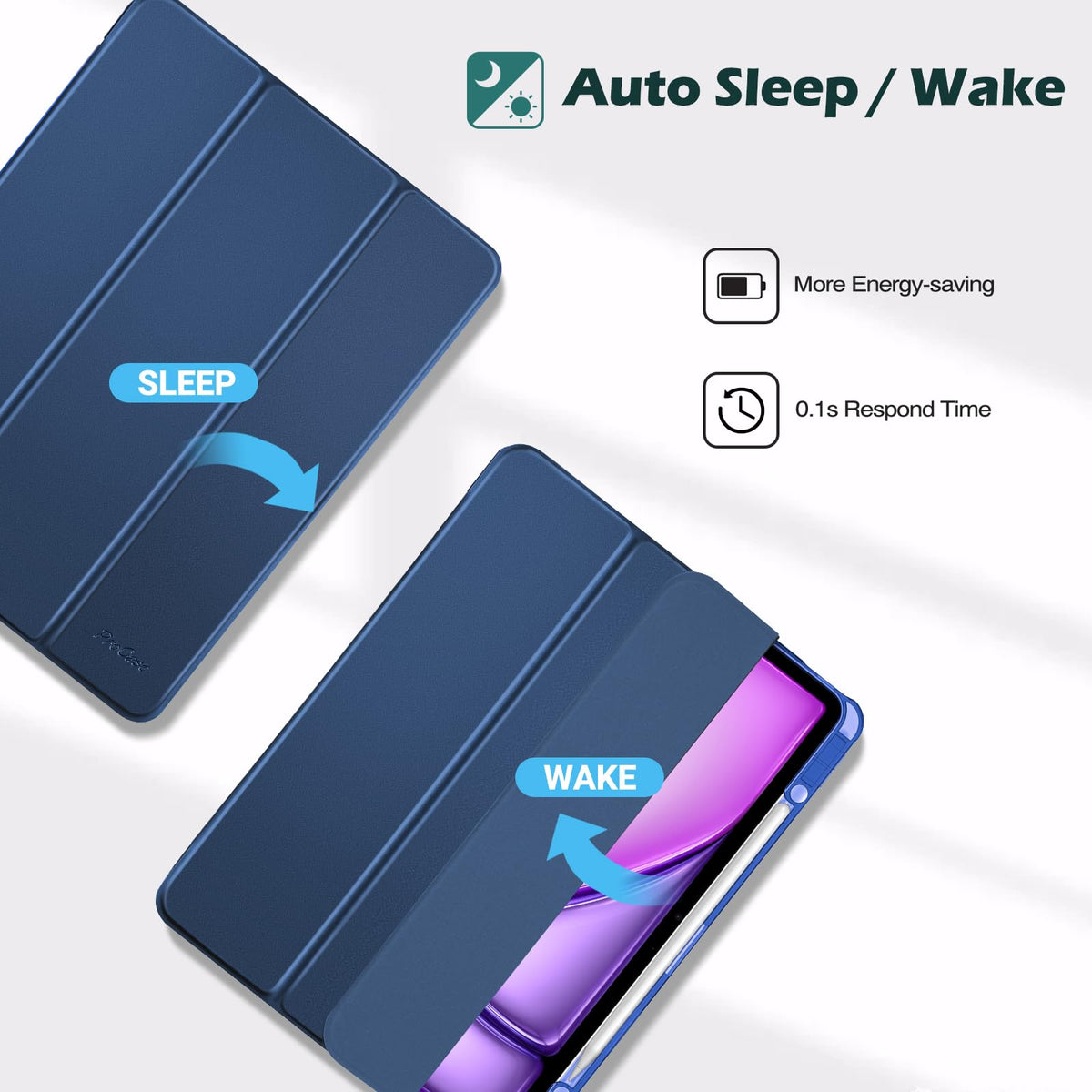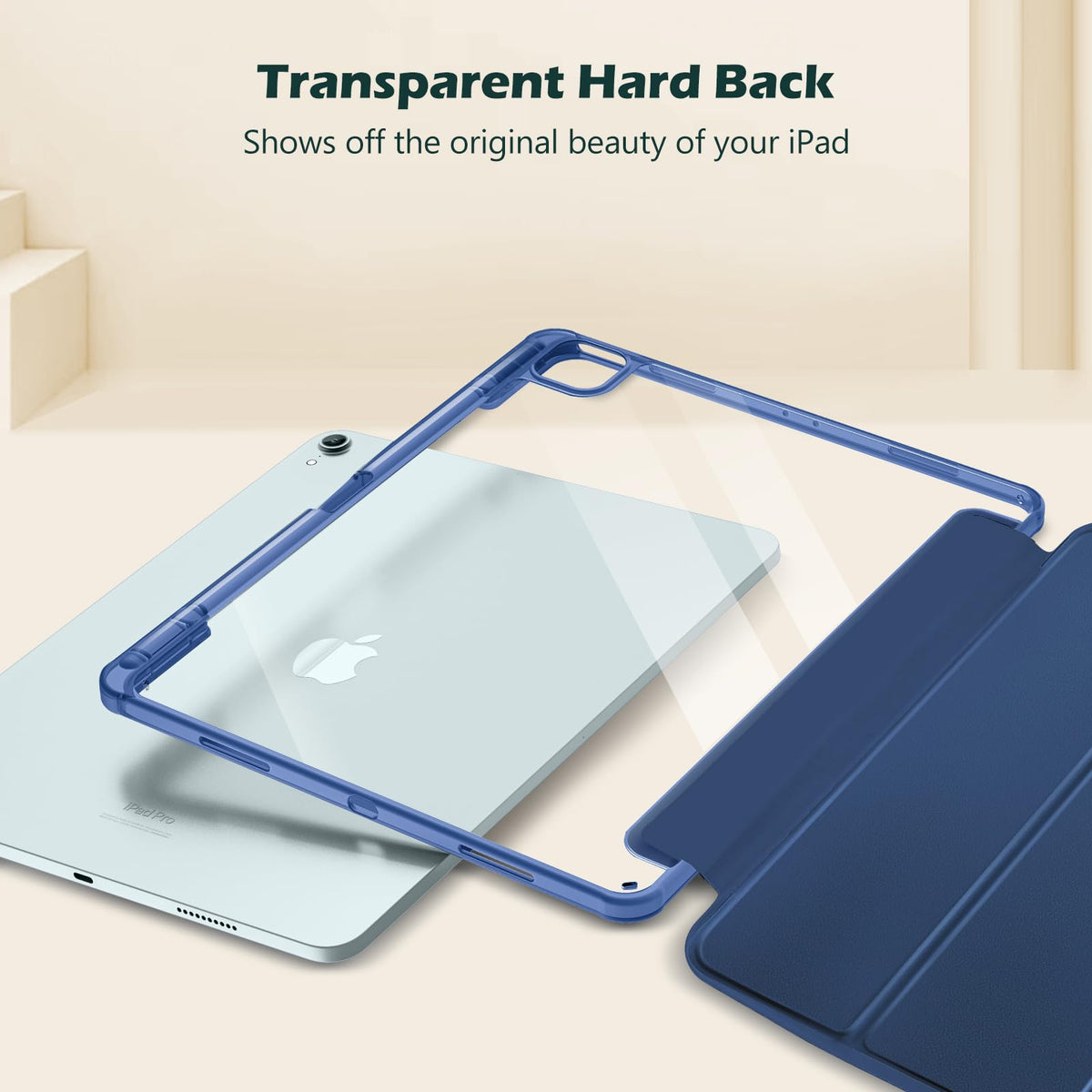Procase For Ipad Air 13 Inch Case M3 2025/M2 2024 With Pencil Holder, Hybrid Smart Cover Ipad 13 Air M3 M2 Case With Clear Transparent Back, Supports Touch Id, Auto Wake/Sleep Navy