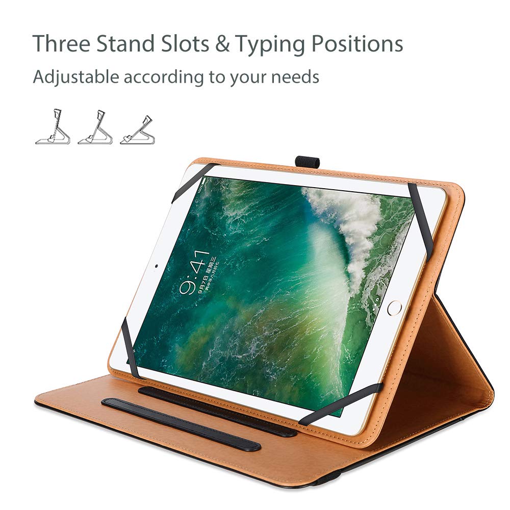 Universal Case Compatible With 9-10.1� Tablets (Case For Umidigi G1 Tab, Byybuo Smartpad A10_L, Apolomedia Ep103A, Ecopad, Zzb Zb10, Teclast P30, Jeazans Oc101, Powmus, Higrace, Headwolf W5, Ugrihach Ug-C10, Coopers Cp10, Lville Lvec10, Yqsavior Yqcp20, Ehfidc K11-Blue, And Other Tablets With Screen Sizes Between 9-10.1In, Or Outer Dimensions Between 10.5-7.5Inch (No Back Camera Opening; Not Support Auto Sleep/Wake For Any Tablets) | Elastic 'X' Band Able To Adjust The Sizes To Fit The Tablets;Universal Silicone 'X' Band Holds Device Firmly During Transport | Premium Composition Leather Exterior And Soft Interior Offer Great Protection Against Daily Use, Free From Worrying About Dropping, Scratching | Multiple Slots Able To Set Up Multiple Horizontal Stand Angles; Strong Elastic Band Closure Secure The Case | Built-In Elastic Stylus Pen Holder For Easy Access To Your Stylus Pen; Front Pocket To Store Your Card