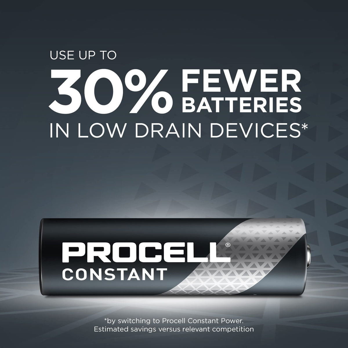 Procell Alkaline Constant Aa Industrial Batteries Are Ideal For Powering Low-Drain Professional Devices Which Require Constant Current Over Long Periods Of Time Such As Alarm Panels, Motion Sensors, Smoke Detectors, Remote Controls, Blood Monitors, Glucometers, Flush Valves, And More. Guaranteed 10 Years In Storage. Delivers Longer Lasting Power (Vs. Prior Procell Alkaline Aa Batteries) In Low Drain Professional Devices That May Result In Fewer Battery Replacements And Can Lead To Savings On Operating Costs Associated With Battery Replacement. Operating Temperatures From -4F To 129.2F. You Can Use Up To 30% Fewer Batteries By Switching To Procell Constant For Low-Drain Devices. Manufactured Using Superior Cell Design (Vs. Prior Procell Alkaline Aa Batteries) To Ensure High-Quality Cell Construction. Economically Packaged In Bulk. Available In Aa, Aaa, 9V, C, And D Sizes