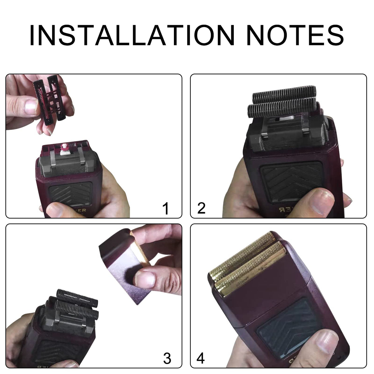 Q: How do I install the replacement foil and cutter bar for my Wahl shaver?A: To install the replacement foil and cutter bar, first ensure your shaver is turned off and unplugged. Carefully remove the old foil and cutter bar assembly from your shaver. Align the new hypo-allergenic gold foil and gold cutter bar assembly with the shaver's base, and press down gently until it clicks into place.