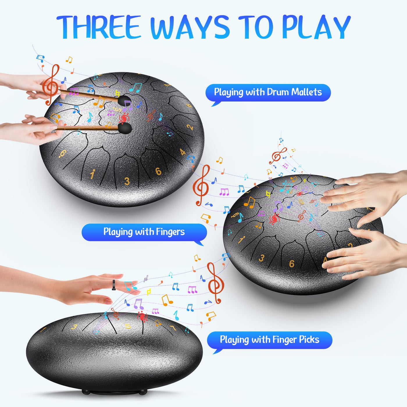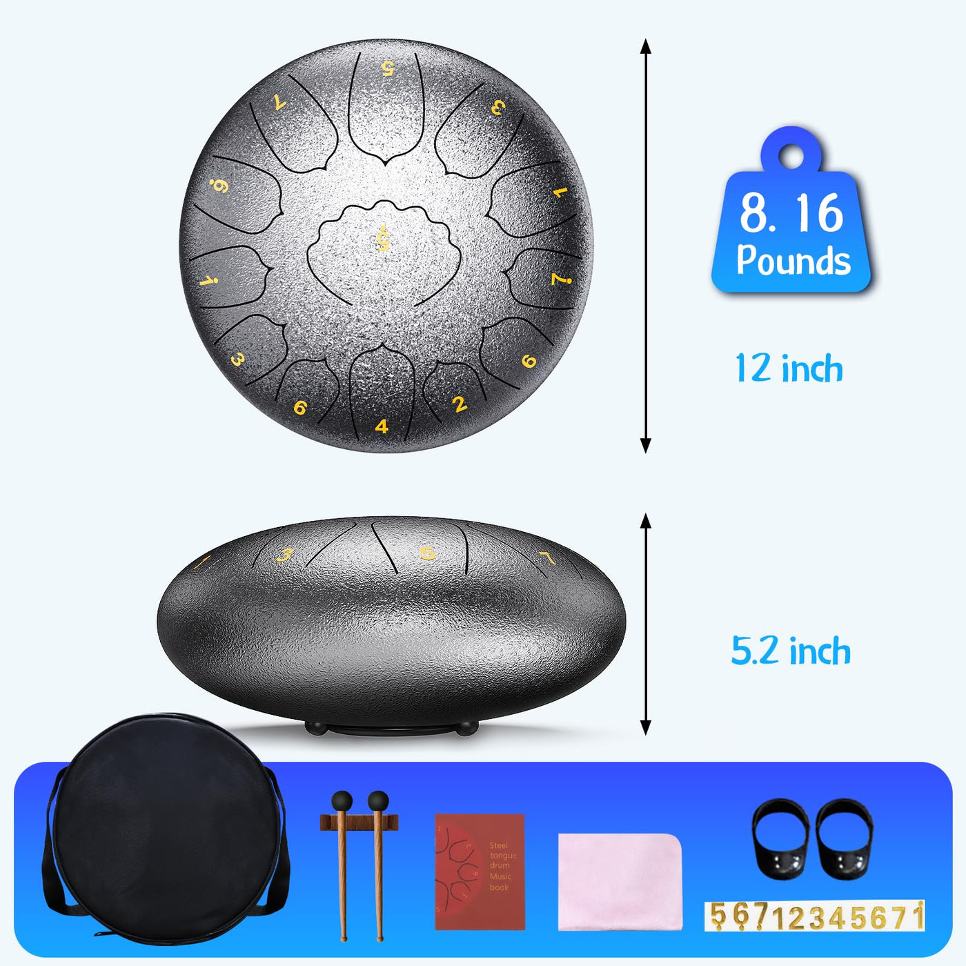 Professional Steel Tongue Drum For Adults & Kids - 8/12 Inch Hand Percussion Instrument Rain Drum With 11/13 Notes For Yoga, Med
