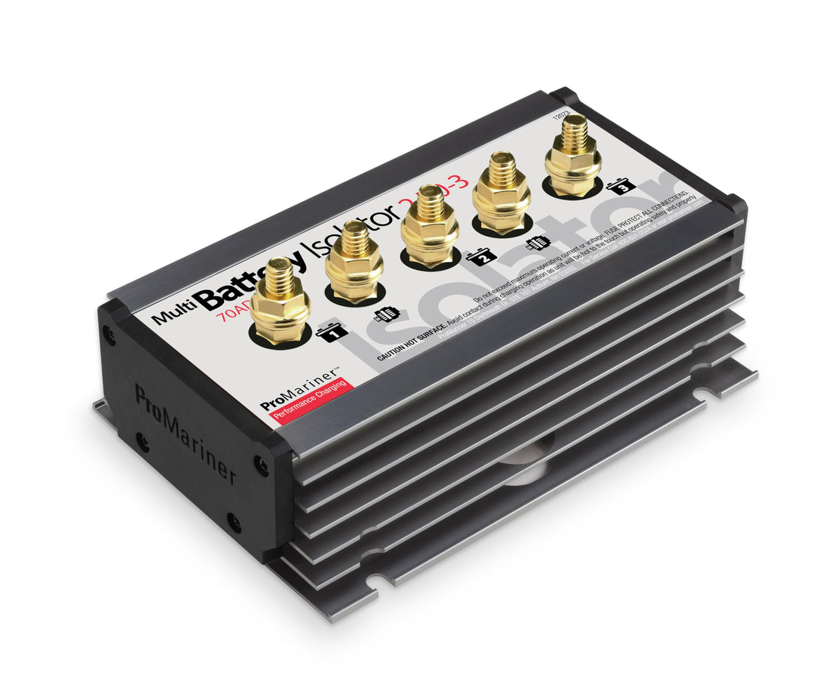 Battery Isolator - 2 Alternator - 3 Battery - 70 Amppromariner Battery Isolators With Gold-Plated Terminals And Improved Efficiency, Provide Enhanced Charging. Rated For Use With Dc Devices Ranging From 10 Amps To 70 Amps.