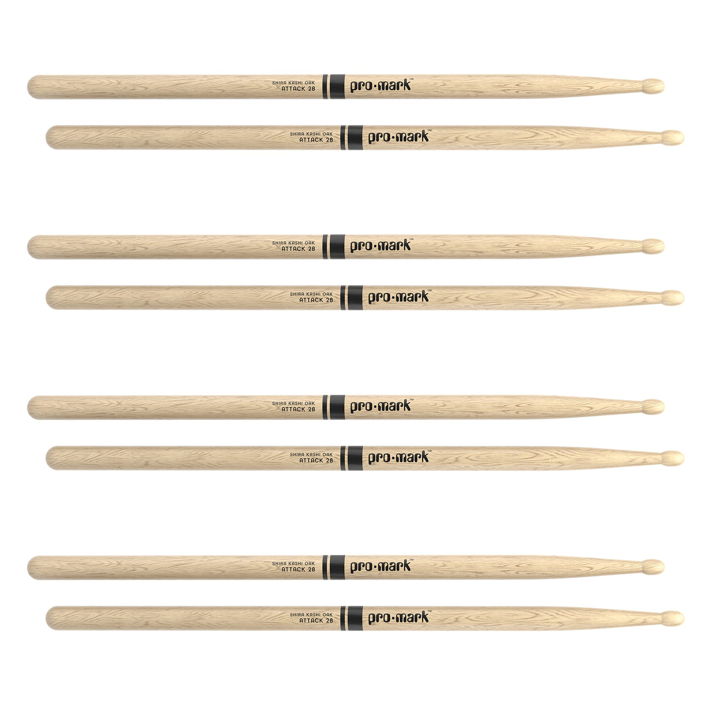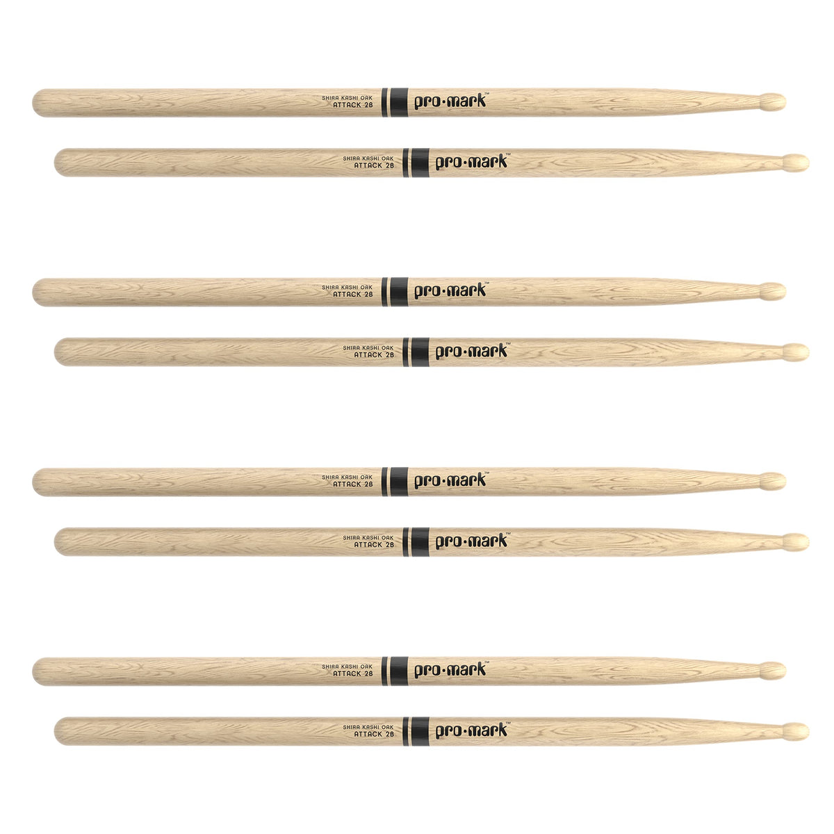 Four Pair Of Promark Shira Kashi Oak Classic 2B Drumsticks. Shira Kashi Oak Is A Dense And Heavy Wood Providing A Sturdy Feel In Your Hand And Excellent Ride Cymbal Articulation.