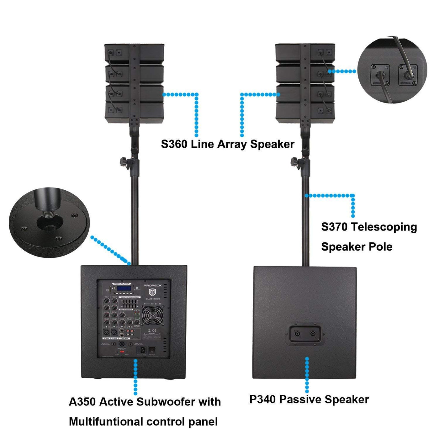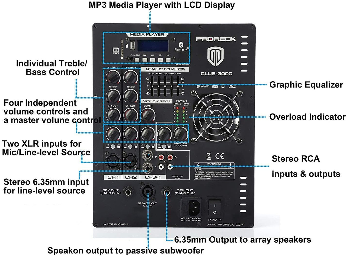 Proreck Club 3000 12-Inch 4000W Dj Powered Pa Speaker System Combo Set With Bluetooth Usb Drive Read Function Sd Card Remote Con