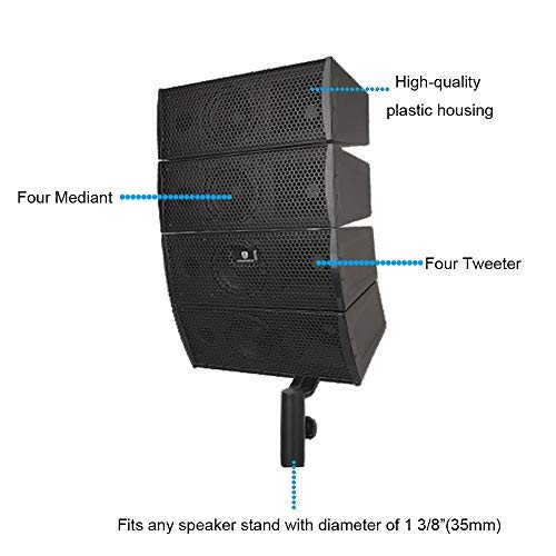 All-In-One Bluetooth Pa System Consists Of (1) Active Subwoofer, (1) Passive Subwoofer, (2) 4X4-Inch Array Speakers(Totally Eight Speakers), (2) Speaker Stands, (1) 30-Feet Speakon Cable, (6) 8-Inch 6.35Mm Cables,(1) 6-Feet 6.35Mm Cables, (1) 33-Feet 6.35Mm Cables, (1) Remote Control And (1) User Manual. The Active Subwoofer Features A 12-Inch Amplifier And Streams Music To The Passive Speaker And Line Array Speakers, To Deliver Music To All Audiences.