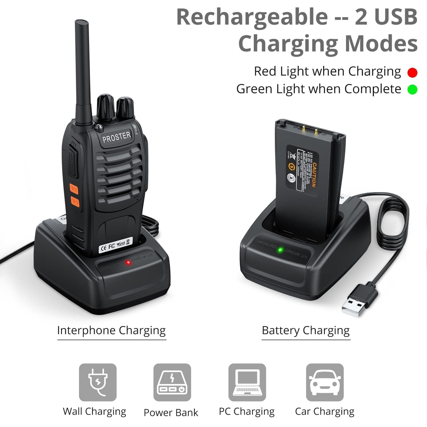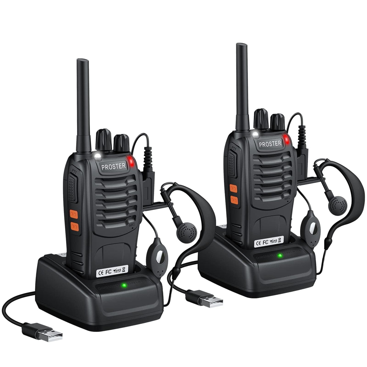 Proster Rechargeable Walkie Talkies 1 Pair Long Range Two Way Radios 16 Channel Handheld Walky Talky, With Usb Charger 2 Pack Earpiece Mic For Walkie Talkies