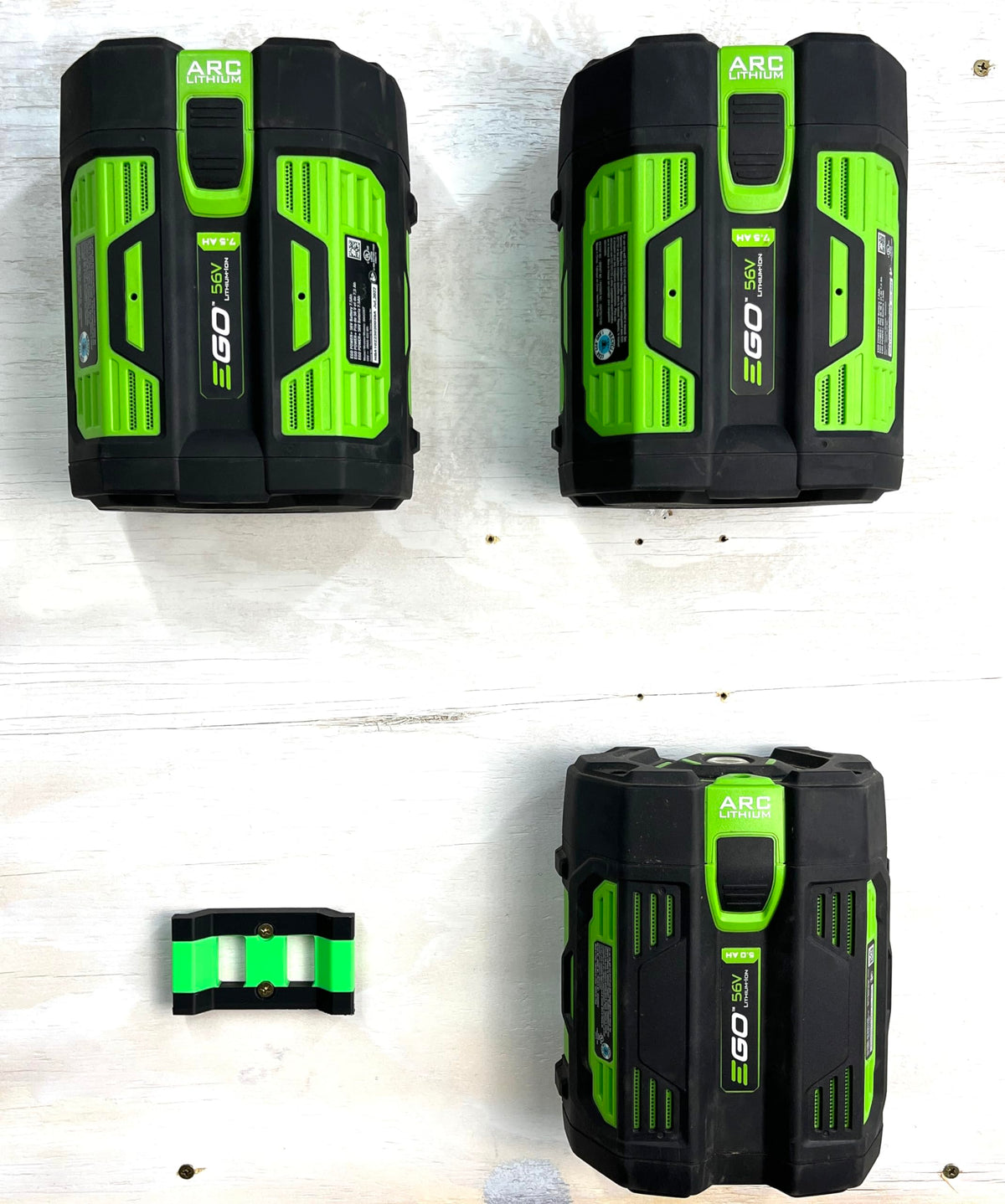 This Custom-Designed, 3D Printed Mount Allows You To Keep Your Ego Batteries Up And Out Of The Way. Due To The Weight Of Ego Batteries, We Recommend Installing On A Backing Board Of Plywood Or Other Lumber, Or Aligned With Studs, For Maximum Security.