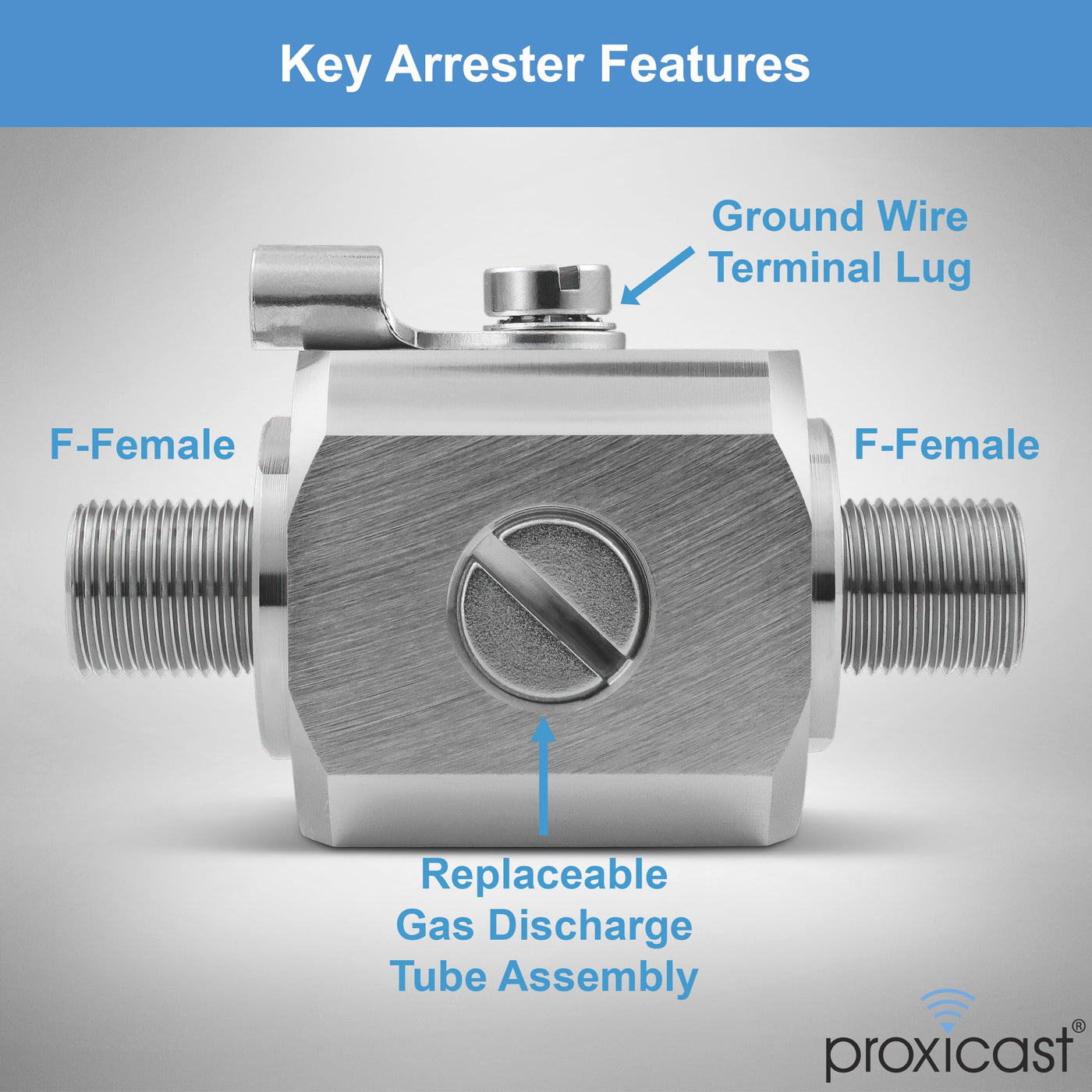Proxicast Coaxial Lightning Arrester/Suppressor With 75 Ohm F Female Connectors Pro Grade Coax Cable Surge Protector For Television (Tv) / Satellite Dish Antennas & Cable Internet Use (Ant 271 002)