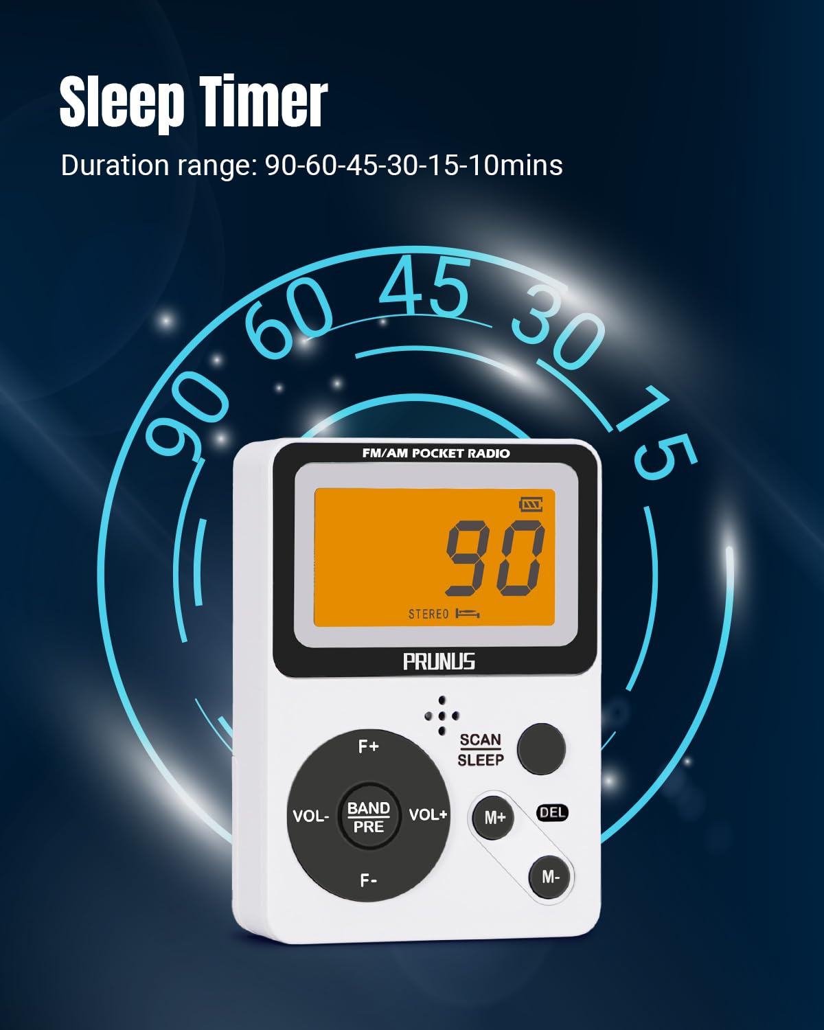 Prunus J-159 Pocket Am Fm Radio Portable With Stereo Earphone, Battery Operated Radio By 2 Aaa, Manual Preset, Large Screen, Loc