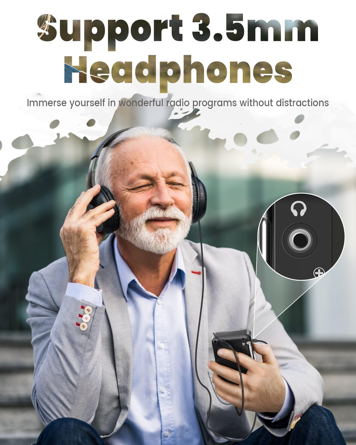 Handheld Size & Carrying Lanyard - This Portable Radio Am Fm, Measuring 2.8 X 1.2 X 4.5 Inches And Weighing Just 0.35 Pounds, Effortlessly Fits In One Hand. Furthermore, A Convenient Hand Lanyard Lets You Easily Carry It Around. Now, Grab It To Infuse Excitement For Your Leisurely Strolls, Beach Outings, Or Picnics. | Wide Range Of Stations With Strong Reception: Covering Fm (87-108Mhz), Am (522-1620Khz), And Sw (5.9-18.0Mhz), This Trasistor Radio Captures A Diverse Array Of Stations. From Local To Long-Distance Broadcasts, Enjoy Talk Shows, Sports Games, Or Weather Updates. The Long Telescopic Antenna And Dsp Chip Guaranteed Great Signal Reception, Delivering Clearer And Static-Free Reception For An Pleasing Listening Experience. | Usb-C Charging: This Am Fm Radio Portable Can Be Easily Charged With The Provided Usb-C Cable. One Full Charge Provides Up To 140 Minutes Of Playtime At Maximum Volume, Offering A Budget-Friendly And Hassle-Free Option. | Support Headphone Jack - The Rechargeable Radio Offers Flexible Listening Experience. Through The Speaker, Share The Excitement Of Sports Games With Friends Or Families. Or, Create A Private Oasis By Plugging In Your Headphones. Let The Timeless Melody Flows Into Your Ears, Evoking Memories Of Bygone Eras. | Perfect Father S Day Gifts: This Am Fm Radio Is Very Popular With Elderly, Middle-Aged People And Kid, That Is One Of The Gifts That Will Continue To Bring Joy To Your Family Members And Friends. If You Want To Express Your Love For Them Choose It!