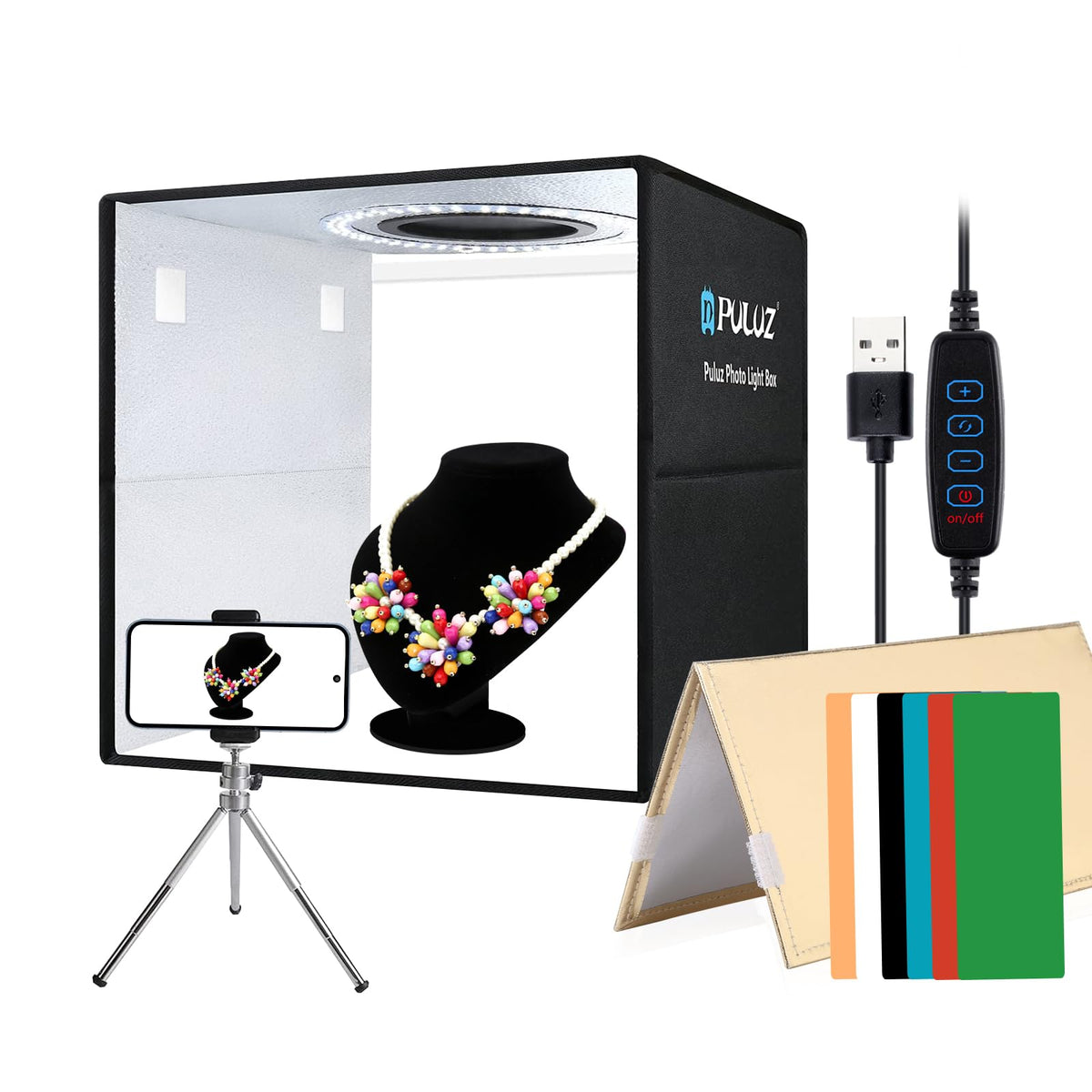 Puluz 12'' 12'' Portable Photography Light Box,Dimmable Photo Studio Light Box With 112 High Cri Led Lights & 6 Pvc Backdrops &